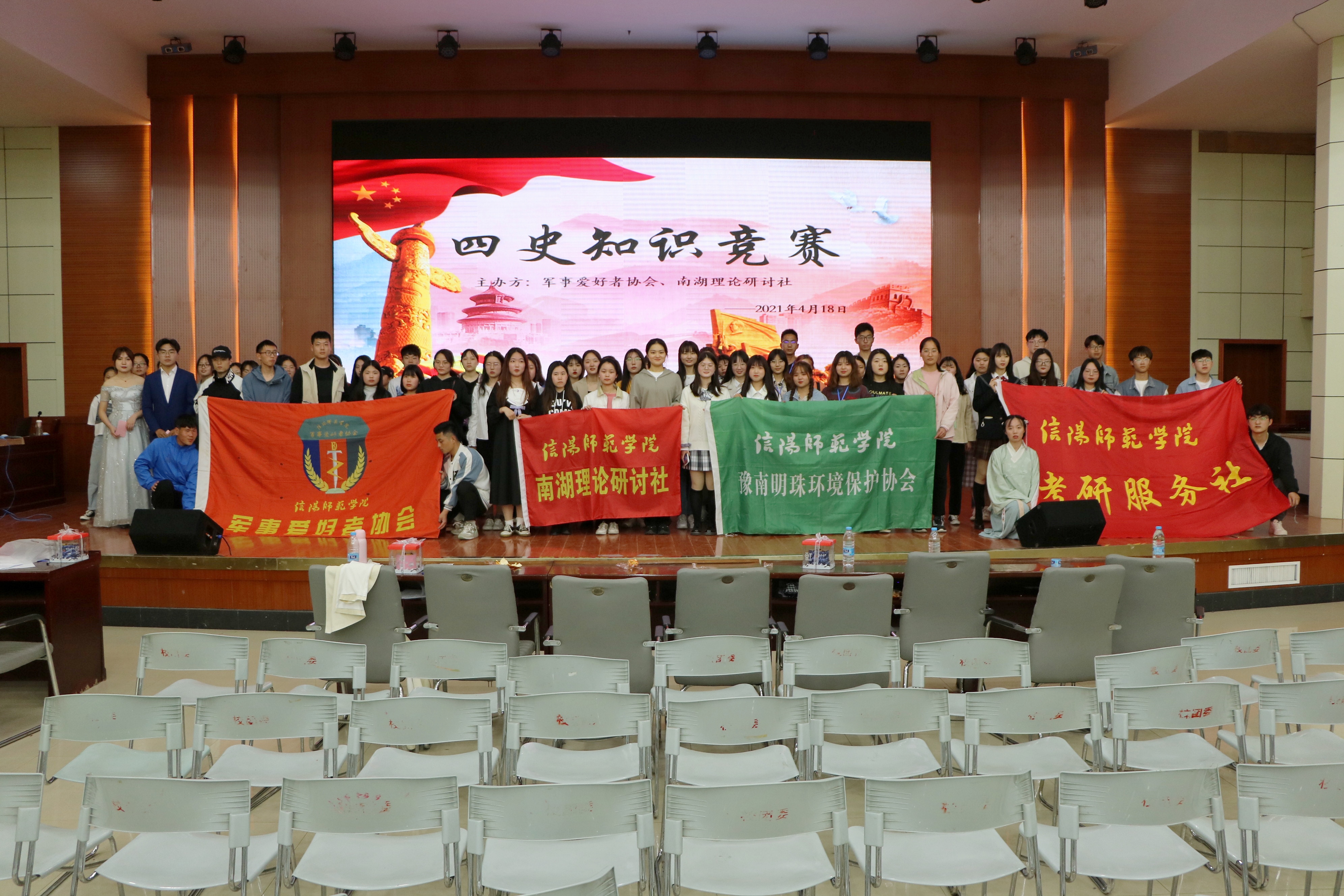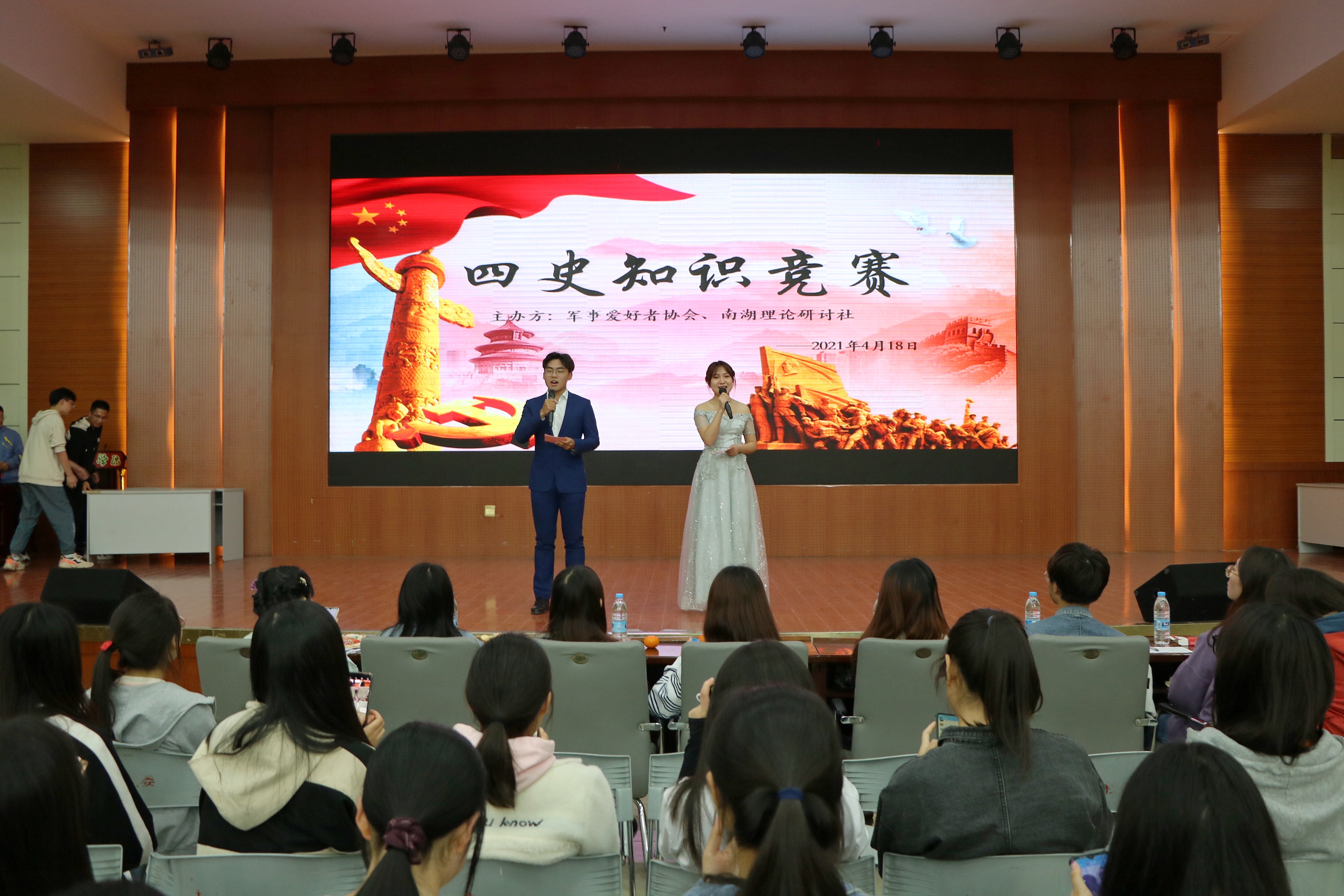 莘莘学子学四史,同心向党迎华诞。为激励广大学子铭记光辉历史,将红色基因内化于心,外化于行,4月18日晚,由德赢AC米兰官网南湖理论研讨社、考研服务社、豫南明珠环境保护协会与军事爱好者协会共同举办的“四史”知识竞赛决赛在逸夫楼报告厅顺利进行。德赢AC米兰官网团委主席团成员、各社团负责人担任此次比赛的评委。比赛由刘金铭、邵子原主持。