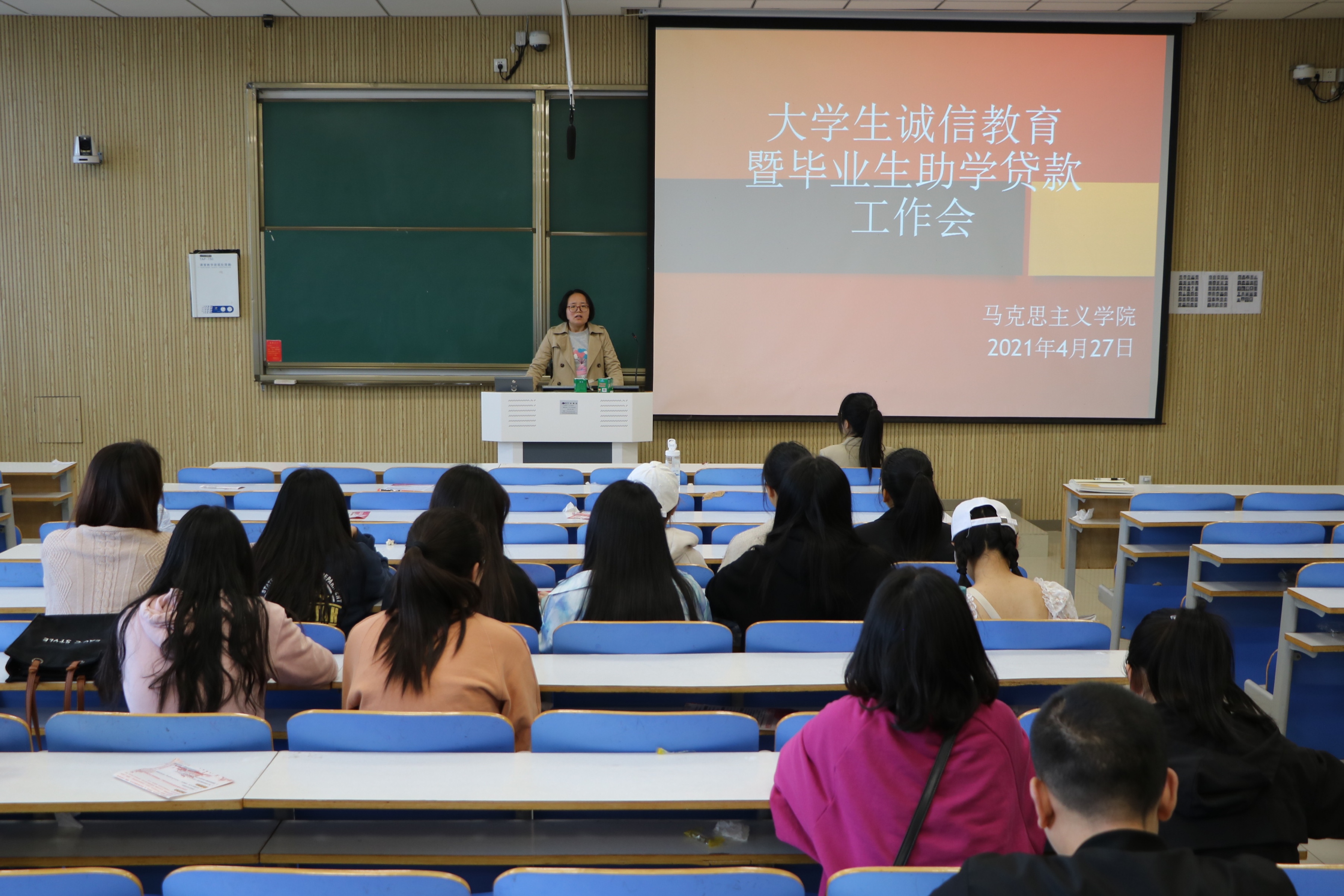 为认真做好我校2021年度贷款毕业生毕业确认工作、信息采集工作,确保我校国家助学贷款工作顺利开展,4月27日下午,德赢AC米兰官网在社科楼515教室顺利召开大学生诚信教育暨毕业生助学贷款工作会。德赢AC米兰官网团委老师曹菁菁,权益保障部负责人祝润豪、何仪以及2017级学生共同参加了本次会议。会议由曹菁菁主持。