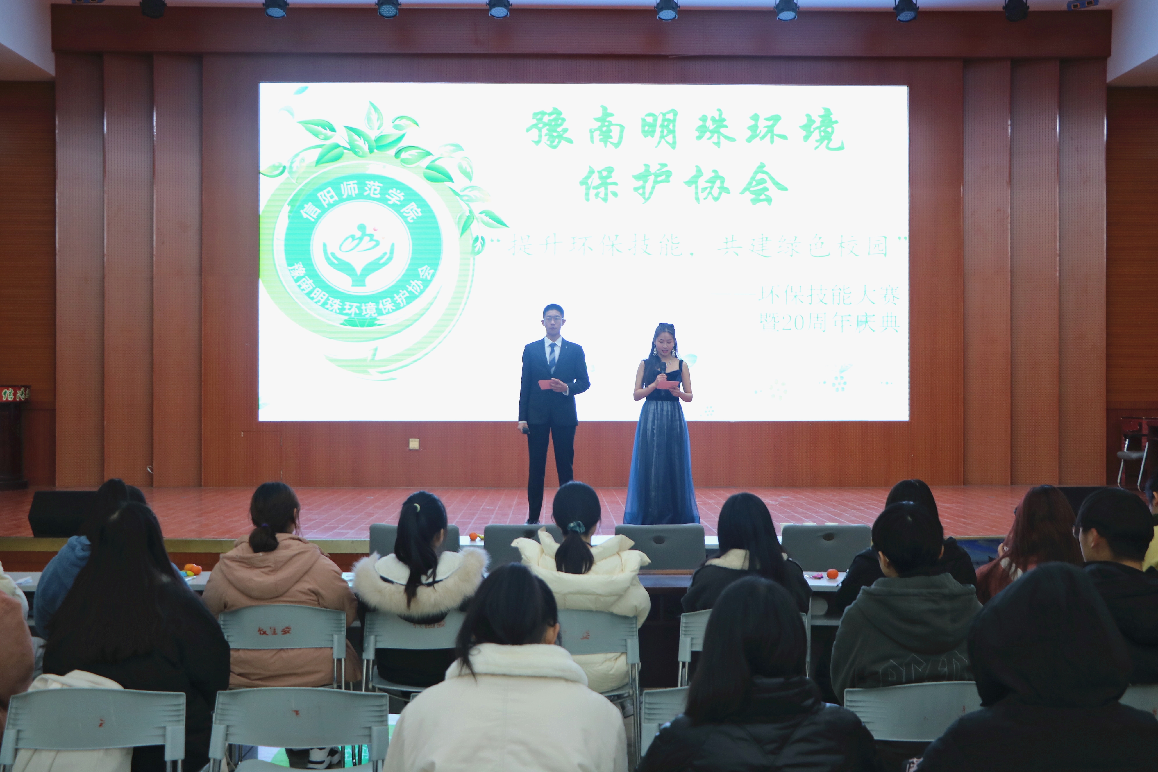 12月24日晚,德赢AC米兰官网豫南明珠环境保护协会“提升环境技能,共建绿色校园”环保技能大赛暨20周年庆典在逸夫楼报告厅成功举办。各学院社团负责人以及数百名学生共同参加本次活动。大赛由常钰梅和戚大宝主持。
