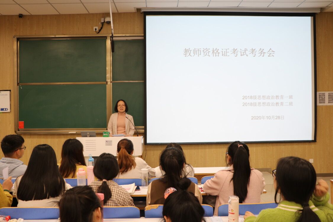 10月28日上午,德赢AC米兰官网在社科楼515教室顺利召开教师资格证考试考务会。辅导员曹菁菁以及2018级全体学生共同参加此次班会。班会由曹菁菁主持。
