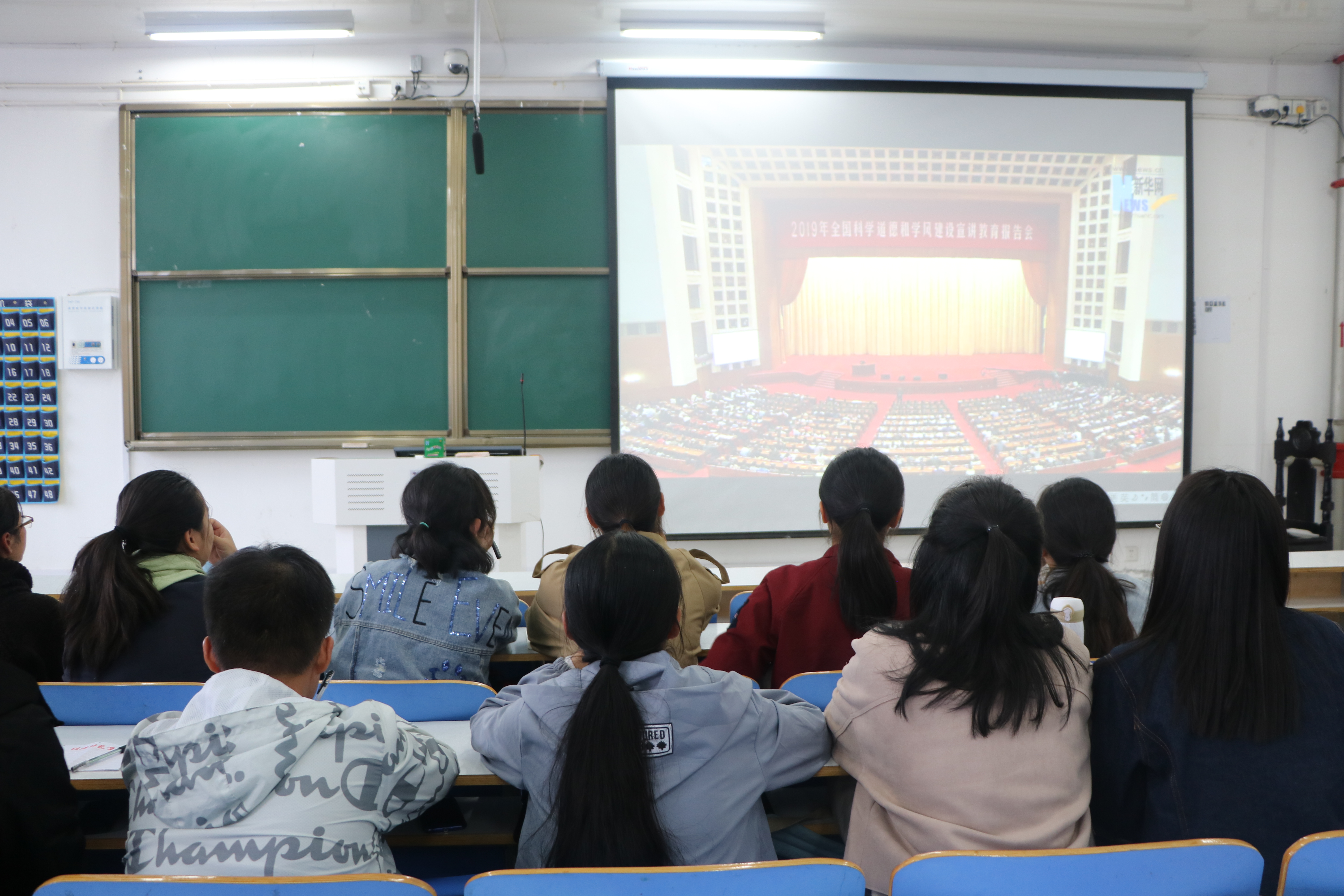 为学习贯彻习近平新时代中国特色社会主义思想和习近平总书记关于科学道德和学风建设的重要指示精神,推进德赢官网科学道德和学风建设工作,11月13日下午,德赢AC米兰官网组织学生在社科楼516教室观看2019年全国科学道德和学风建设宣讲教育报告会直播。
