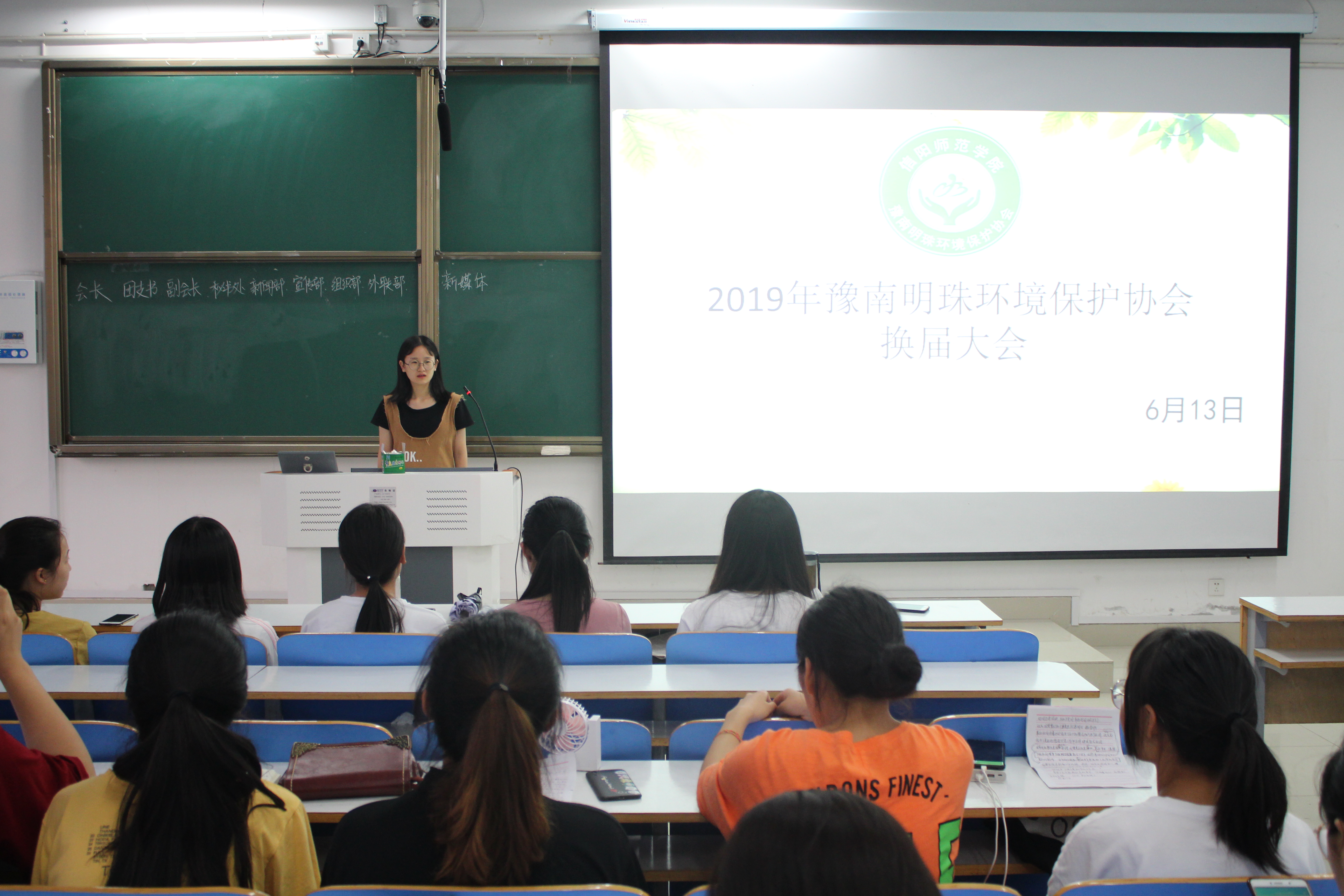 6月13日晚,豫南明珠环境保护协会在社科楼516教室顺利举行2018-2019学年社团换届竞选大会。德赢AC米兰官网分团委学生会副主席高蓉、社长丁素艳、团支书郑梦丹及18级全体成员共同参加了此次全会。会议由丁素艳主持。