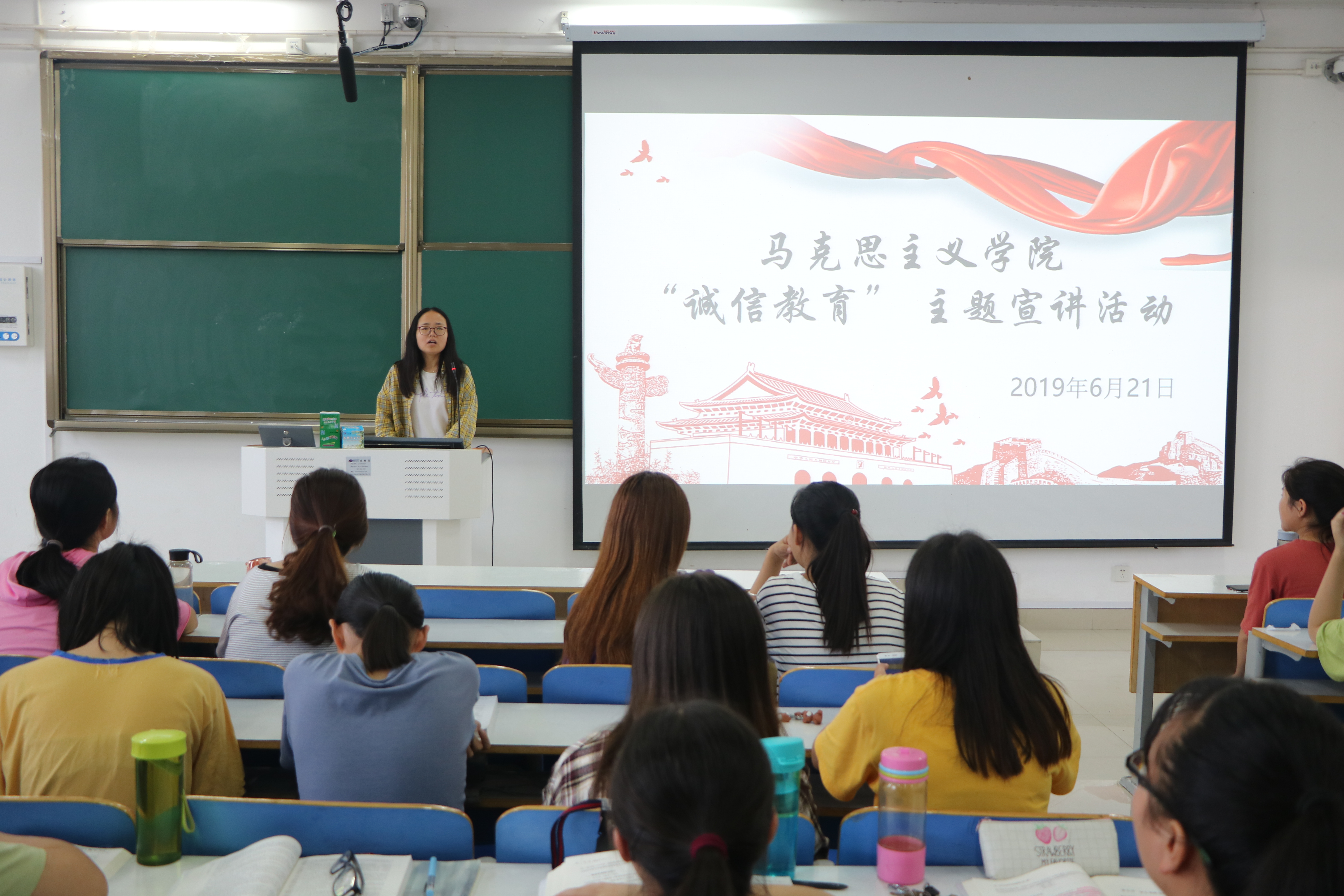 为大力推行诚信教育,增强同学们的责任意识,6月21日上午,德赢AC米兰官网在社科楼514、515教室顺利开展“诚信教育”主题宣讲活动。宣讲团由德赢官网2019年“诚邀你我,与信同行”主题演讲比赛获奖选手黄子晋、常红星、刘晓哗、艾子元组成。团委书记曹栋、资助专员曹菁菁和2016级、2017级、2018级全体同学参加此次活动。活动由分团委学贷部部员刘巧航主持。