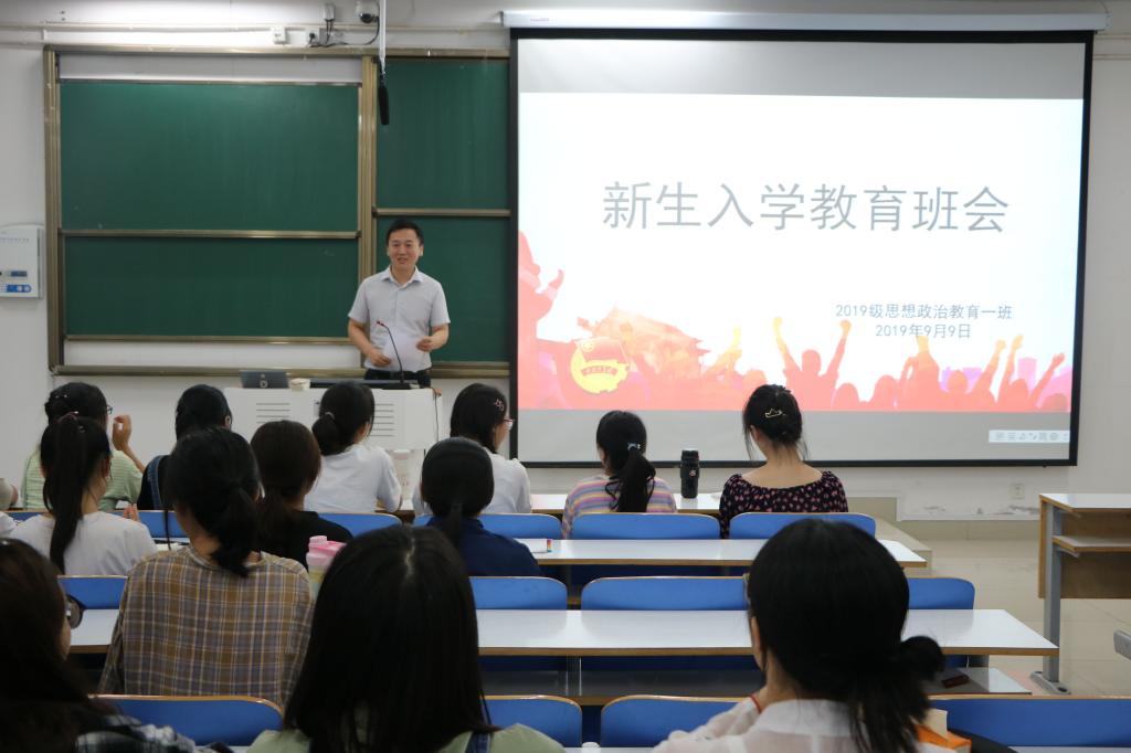 9月9日晚,德赢AC米兰官网在社科楼515、516教室顺利开展新生入学教育班会。团委书记曹栋、辅导员陶青青以及2019级全体新生共同参加了此次班会。班会由班级负责人王文芳、王雅纯、曲新宇和艾子元主持。