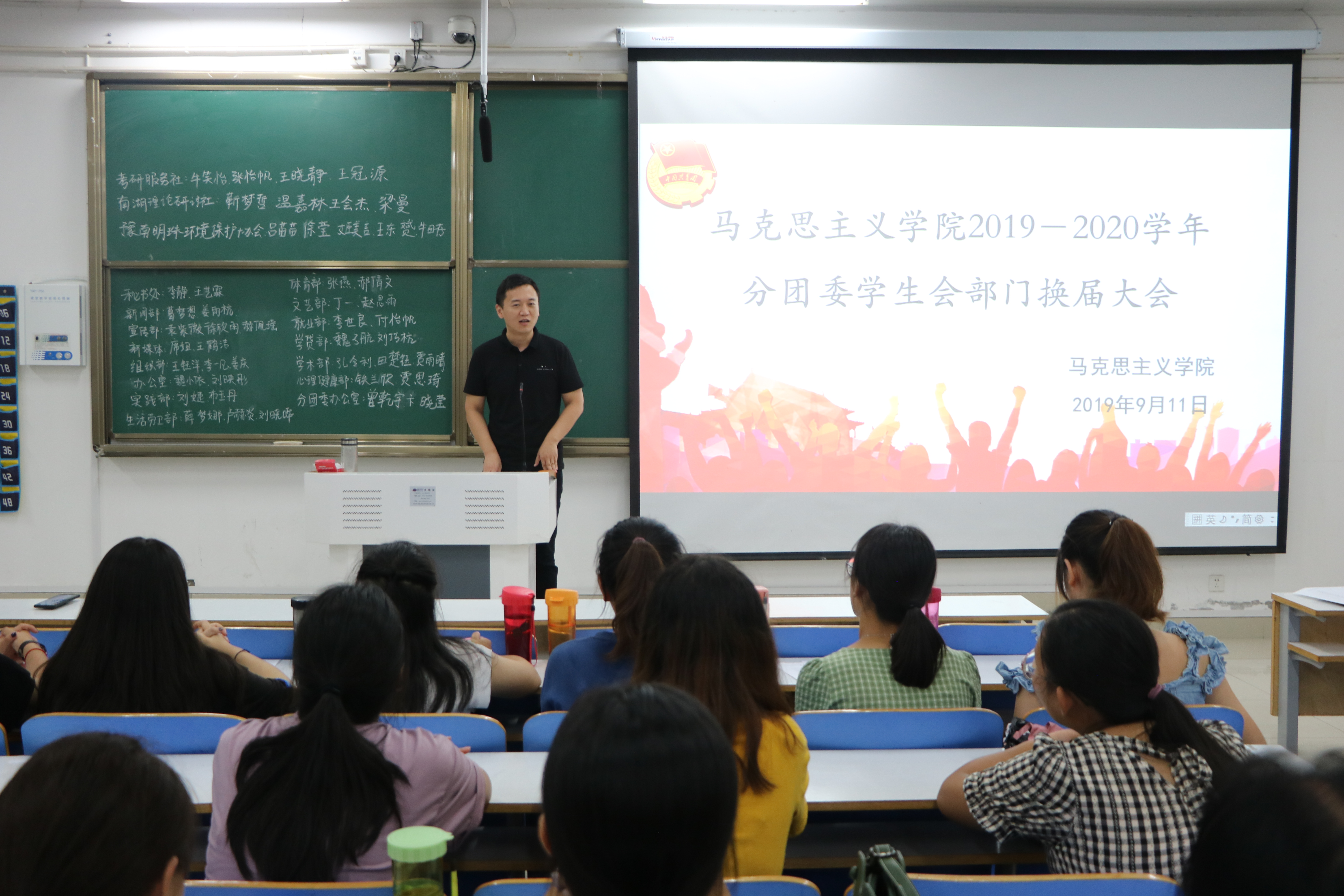 9月11日晚,德赢官网于社科楼516教室举行2019-2020学年学生会部门换届大会,团委书记曹栋与学生会全体成员共同参加了本次换届大会。大会由王文芳主持。
