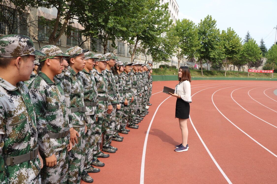 首先,曹菁菁宣读《关于开展2019级学生军事训练和军事理论课教学工作的通知》,并着重强调了军事课的课程定位以及具体的考核办法和标准。同时,她希望新生们在此次军训中能够严格要求自己,遵守训练纪律,圆满完成训练任务。随后,陶青青进一步明确了对新生们的军训要求,鼓励大家坚持“塑形”与“塑魂”相结合,坚持学习军队优良作风与刻苦训练相结合,尽情展现当代大学生奋发向上的精神风貌。最后,她希望同学们能以“不求一举将军,只求日日拱卒”的精神激励自己立足当下、追求精进,全面提高自身身体素质和军事理论素养。