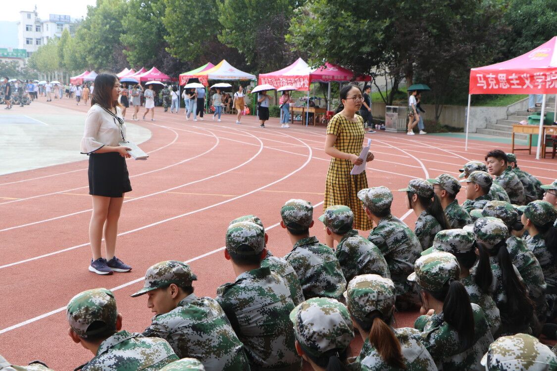 为提高新生爱党、爱国、爱军意识,并加强学生军训期间的安全教育管理,德赢AC米兰官网于9月11日在东操场开展了2019级军训动员大会。德赢官网辅导员老师曹菁菁、陶青青以及2019级全体新生共同参与本次大会。大会由陶青青主持。