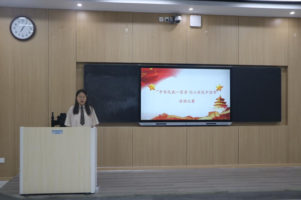 在比赛中,14组选手紧扣主题,以饱满的热情、生动的语言、高昂的士气和稳健的台风,向现场观众讲述了一个个爱国爱党、拥护党的民族政策、维护民族团结的感人故事。其中,王譯慧向同学们详细介绍了金元清等古代少数民族政权的汉化政策,表明中华文化是在各民族的劳动与创造中诞生的,阐述了铸牢中华民族共同体意识这一举措的历史依据。马乐彤在演讲中指出,实现中华民族伟大复兴,首先便是要铸牢中华民族共同体意识,引导各族人民牢固树立休戚与共、荣辱与共、生死与共、命运与共的共同体理念,共同为社会主义现代化建设和民族复兴奋斗。比赛结束后,评委进行简要总评,本次演讲比赛展现了德赢官网学生对实现中华民族一家亲的共同心愿,希望同学们能够积极参加与民族团结相关的活动,自觉接受民族团结教育,增强中华民族共同体意识,找到各族人民需求的最大公约数,画出中国复兴之梦这一最大同心圆。