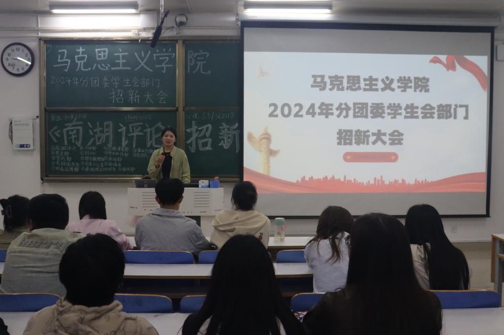 会议肇始,学生会执行主席刘英凯就德赢AC米兰官网分团委学生会基本情况进行概述,并鼓励新生积极投入团学组织,通过学生组织实现自我教育、自我管理、自我进步、自我发展。接着,学生会各部门、各社团就部门特色、工作方向、现行制度、成员概况等方面依次宣讲,通过PPT、视频的形式向同学们介绍部门品牌活动,帮助他们搭建起对学院组织的认知框架,加深对学生组织运转机制的理解。同时,本次宣讲会为学生会招新搭建了良好的平台,也为新生了解马院、融入马院提供重要渠道。