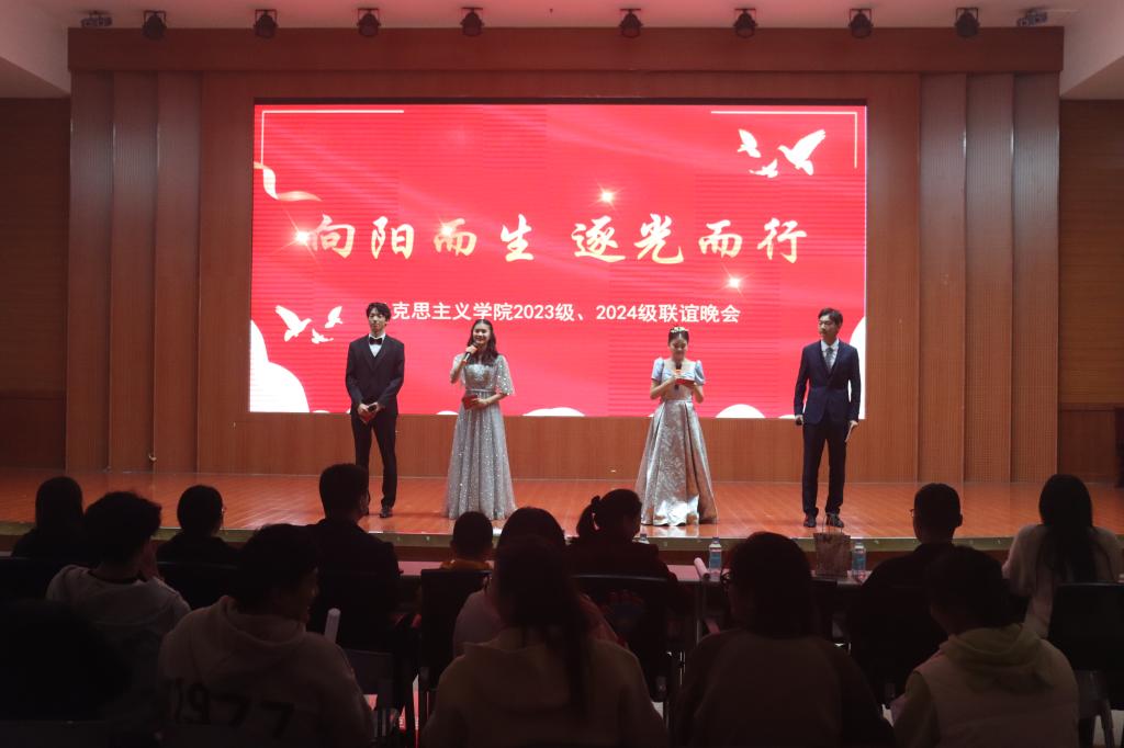 燃梦逐阳,青春飞扬。11月16日晚,德赢AC米兰官网2023级、2024级联谊晚会在逸夫楼A座报告厅举行。德赢官网副院长訾其伦、常文涛,团委书记陶青青,德赢官网学生会主席团成员、其他兄弟学院学生会主席代表、2024级班代、2023级和2024级全体同学观看晚会。晚会由邢哲文、刘畅、张家成、晋瑜蔓主持。