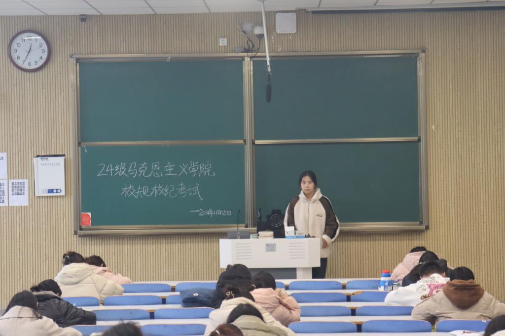 为强化学生规则意识,保障德赢官网后续教学及管理工作的顺利开展,11月25日中午,德赢AC米兰官网在社科楼514、515教室组织2024级新生进行校规校纪考试。德赢官网2024级全体新生共同参加考试。生活劳卫部龚雪鑫、曹慧茹担任监考员。