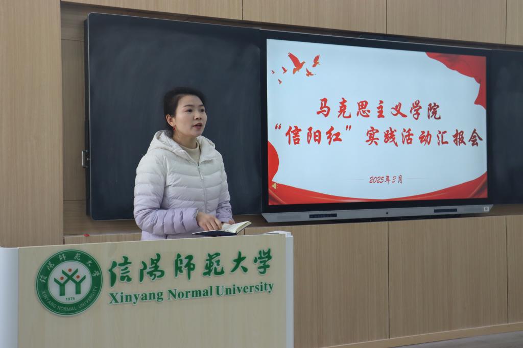 随后,由“信阳红”系列实践活动团队代表依次上台进行汇报。调研小组多采取线上调查问卷、线下教师访谈相结合的方式获得对教师领域深层次的理解,提升自身专业素养。其中,“以知促行”宣讲团从多维度去洞察现实,聚焦调研核心,从不同角度出发,面向教育者、受教育者双群体展开调研。在实践中采取对话、访谈等模式引导同学们探求真知,获得成长。
