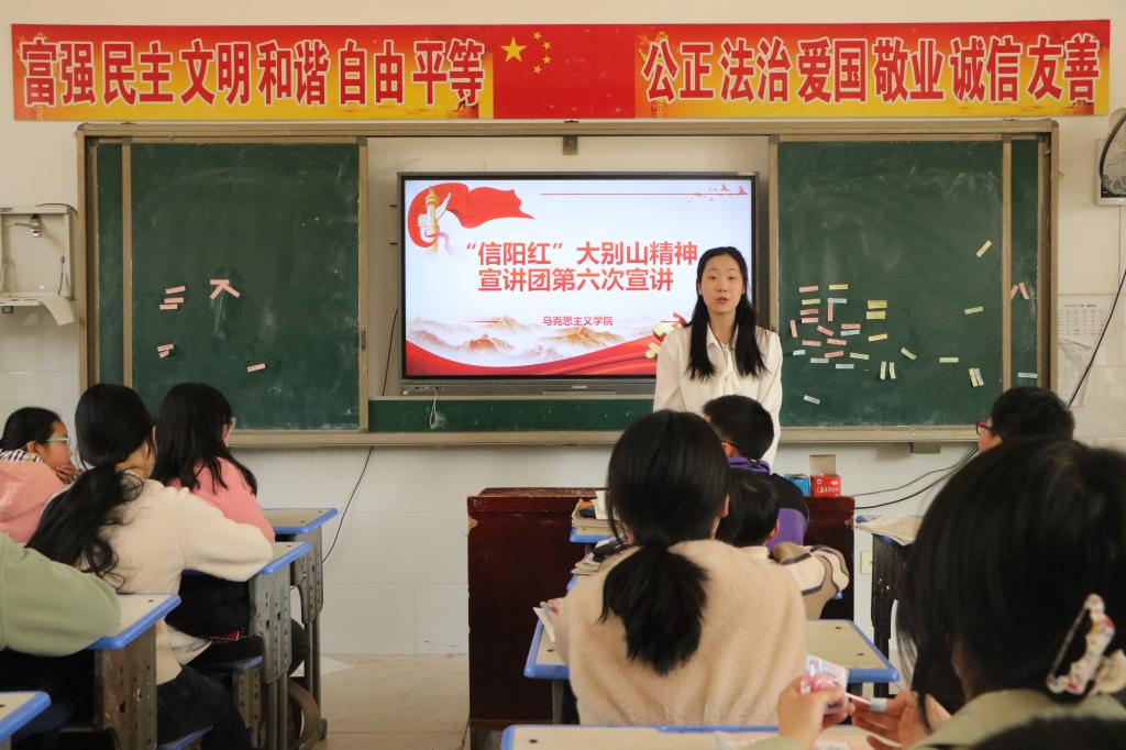 为更好弘扬大别山精神,传承红色基因,赓续红色血脉。3月19日下午,德赢AC米兰官网“信阳红”大别山精神宣讲团赴飨堂小学进行宣讲活动。本次活动由宣讲团团长徐曼珍带队,王彦谞主持。