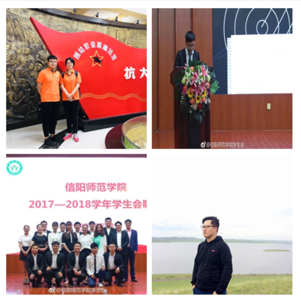 该生始终保持着积极的热情、坚定的信念和强烈的责任心,在2016年9月至2017年9月期间任德赢AC米兰官网秘书处、生活劳卫部、体育部干事;在2017年9月至2018年3月期间任德赢AC米兰官网新闻文艺部副部长,举办“喜迎十九大,共筑中国梦”书法绘画大赛;带领德赢AC米兰官网广播体操队伍在2017年广播操比赛中取得二等奖的好成绩。2018年3月至今任德赢AC米兰官网分团委学生会主席,协助团委老师处理各项学生事务,建立健全德赢官网学生与老师沟通与交流的良性渠道。作为一名学生干部,他始终以最高的标准严格要求自己,在工作中勤勤恳恳、认真负责。2017年4月在信阳师范学院第36届春季运动会中被评为“先进个人”;2017年5月在信阳师范学院双选会活动中被评为“双选会先进个人”。