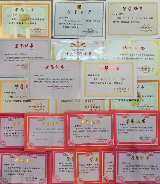 该生作为团支书,在支部工作中注重方法创新,荣获2018年信阳师范学院“魅力团支书”;乐于奉献,荣获2016-2017学年信阳师范学院“优秀团干部”称号;以身作则,荣获2016-2017学年信阳师范学院“模范干部”称号,连续两年荣获2017-2018学年信阳师范学院“三好学生”荣誉称号。