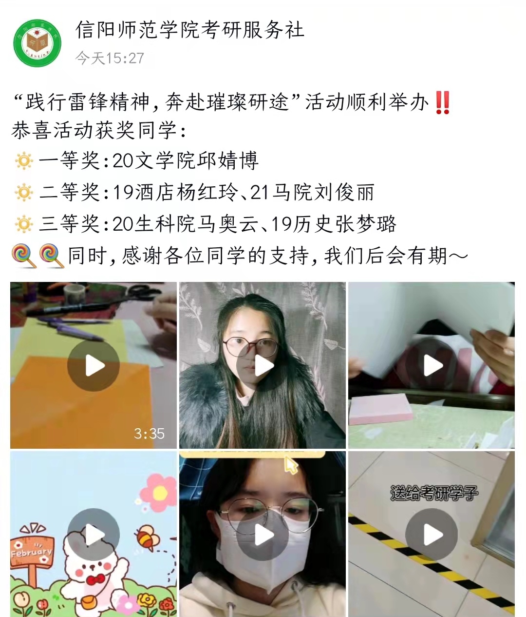 为引导大学生深入学习雷锋精神,赋予雷锋精神新的时代内涵,引导当代青年树立服务意识,考研服务社于3月19日至25日在全校开展“践行雷锋精神,奔赴璀璨研途”志愿服务活动。