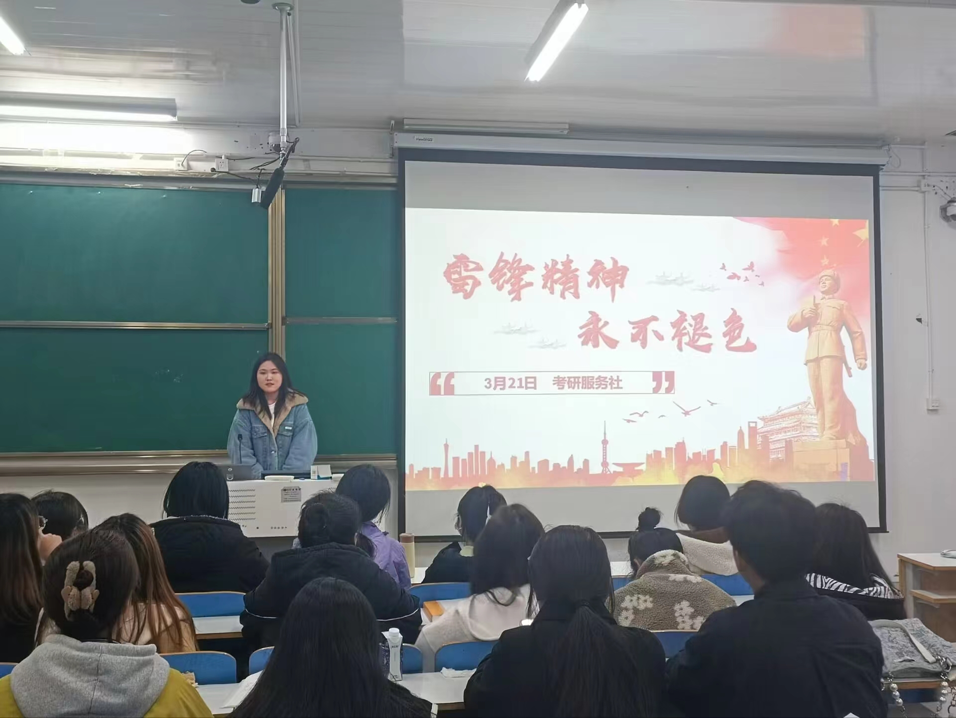 历史川流不息,精神代代相传。为了让广大青年以雷锋精神为时代丰碑,引领自身不断发展,争当雷锋精神的践行者,3月21日下午,考研服务社于社科楼514召开“雷锋精神,永不褪色”主题团课。本次团课由团支书陈玉银主持,社团全体成员参加。