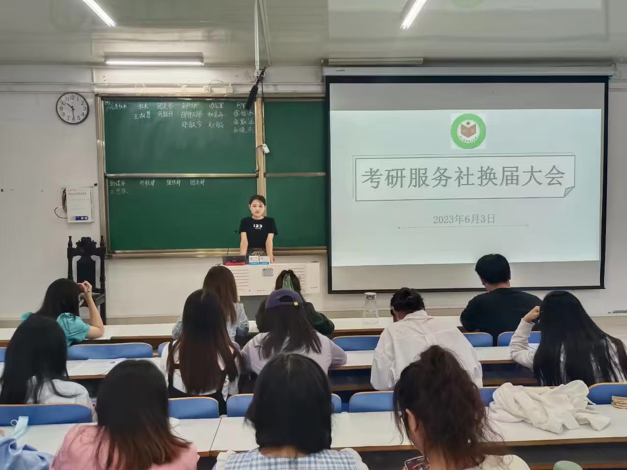 6月3日上午,考研服务社第十五届换届大会在社科楼514教室召开。第十四届理事会全体成员、社团分管主席及考研服务社全体干事参加此次换届大会。