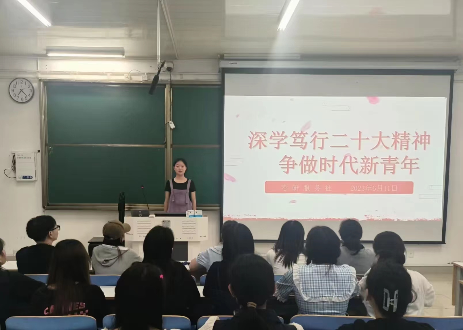 为深入学习二十大会议内容,感悟会议精神,6月11日,考研服务社于社科楼514教室召开“深学笃行二十大精神,争做时代新青年”主题团课活动。本次团课由社长王淑慧主持,社团全体成员参加。