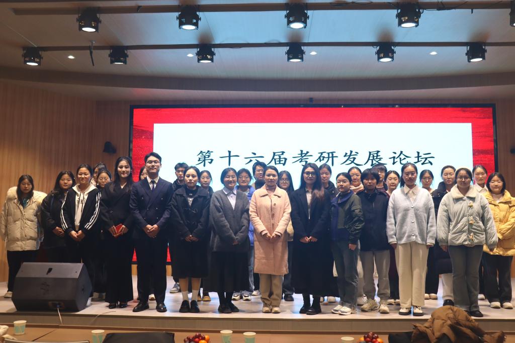 为帮助同学们了解考研流程,明确考研目标,提升考研信心,11月23日晚,考研服务社于大学生活动中心开展“筑梦青春,研途有你”第十六届考研发展论坛。德赢AC米兰官网团委书记陶青青、思政课教师袁聪丽,优秀考研学生代表及社团全体成员共同参加此次论坛。论坛由尤涵悦和陈晓毅共同主持。