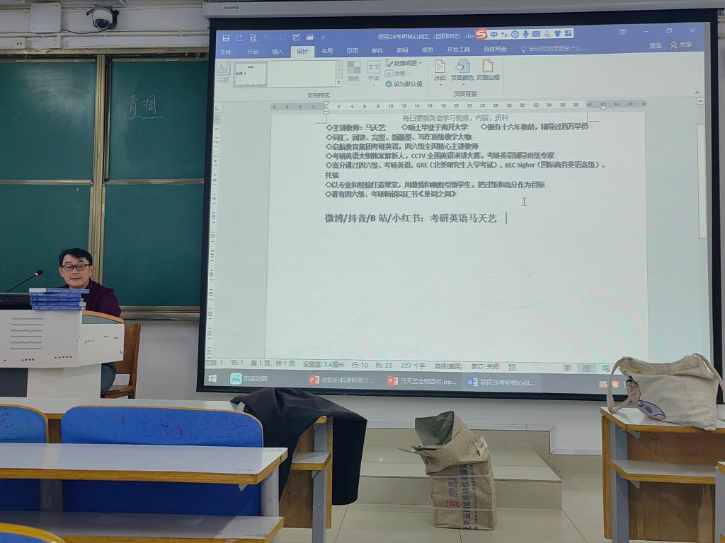 厚积薄发,笃行致远。为助力学生备战考研英语,提升备考效率,4月7日,德赢AC米兰官网分团委联合考研服务社在社科楼514教室成功举办“名师领航考研路,英语提分有妙途”专题讲座。本次活动特邀启航考研英语名师马天艺老师担任主讲。讲座聚焦考研英语命题趋势、科学备考策略及心理调适方法,全方位提升学生应试能力与备考信心。