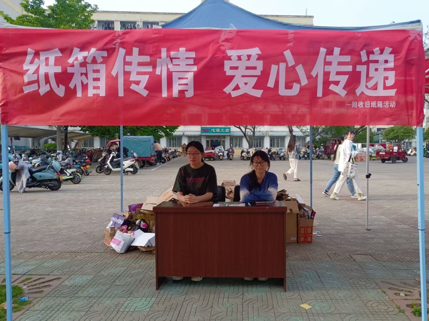 随着社会的不断发展,绿色发展的新发展理念逐渐深入人心,为贯彻落实科学发展观和习近平总书记提出的“绿水青山就是金山银山”理念,4月14日-4月17日,豫南明珠环境保护协会在八餐小广场举办“纸箱传情,爱心传递”回收旧纸箱活动。