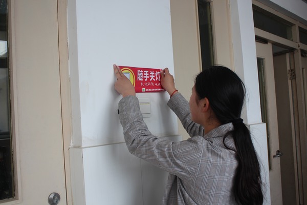 此次活动旨在更换教室“随手关灯”和卫生间“节约用水”的标语,为了高质量高效率地完成更换标语,张明慧将大家分成小组,分工合作。同学们两两结合,干劲十足,配合默契。在他们的努力下,社科楼从一楼至五楼的旧标语全部更换为新标语。换上新标语的社科楼教室、卫生间焕然一新。此次活动在同学们的欢声笑语中圆满结束。