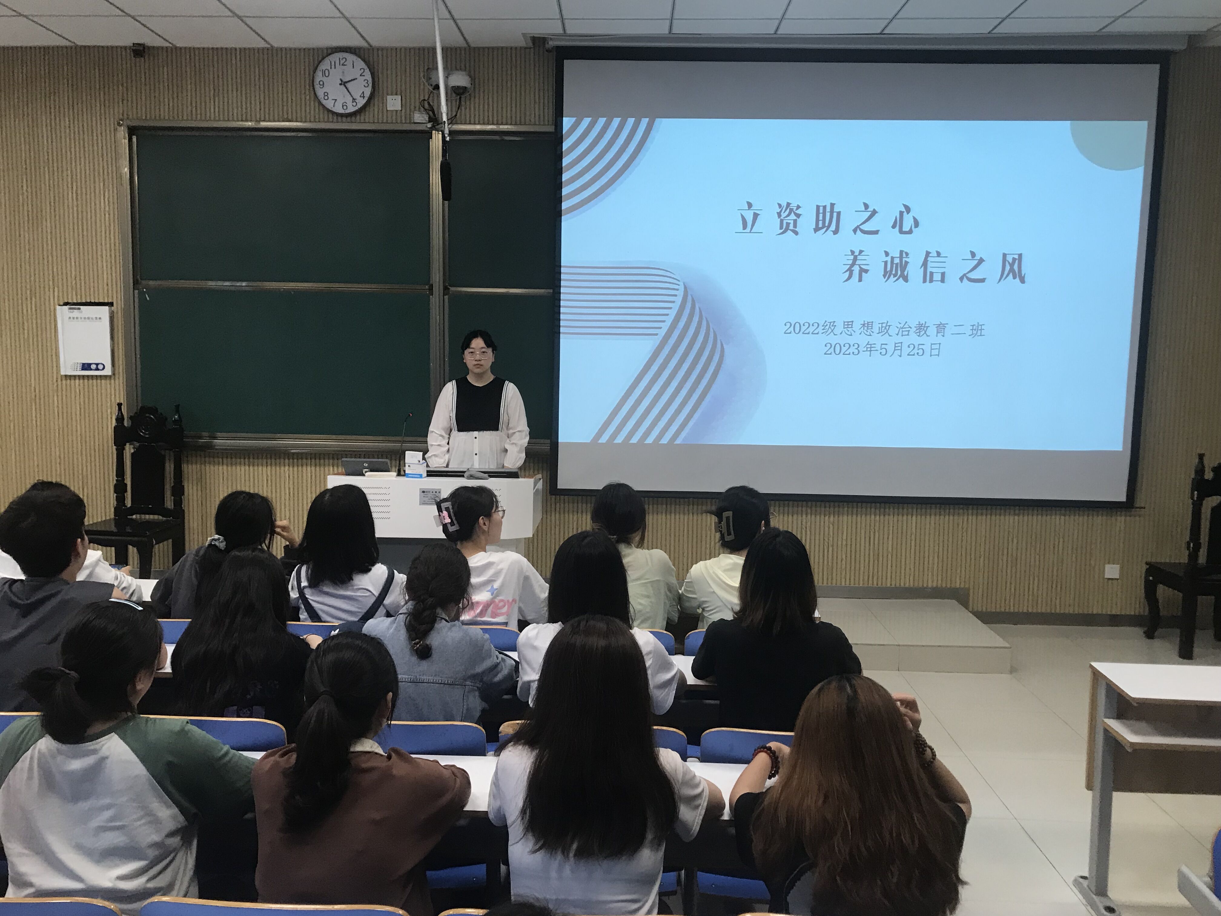 为进一步落实高校立德树人根本任务,提高学生的诚信意识,推动资助工作健康和谐发展,5月25日下午,德赢AC米兰官网2022级思想政治教育二班在社科楼515教室召开“立资助之心,养诚信之风”主题班会,2022级思想政治教育二班全体同学共同参加。班会由班长李佳音主持。