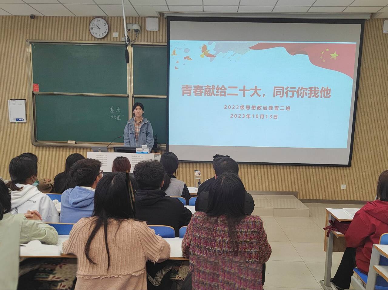 10月13日上午,德赢AC米兰官网2023级思想政治教育二班在社科楼515教室召开“青春献给二十大,同行你我他”主题团课。德赢官网2023级思想政治教育二班全体同学共同参与本次团课,团课由团支书王慜初主持。