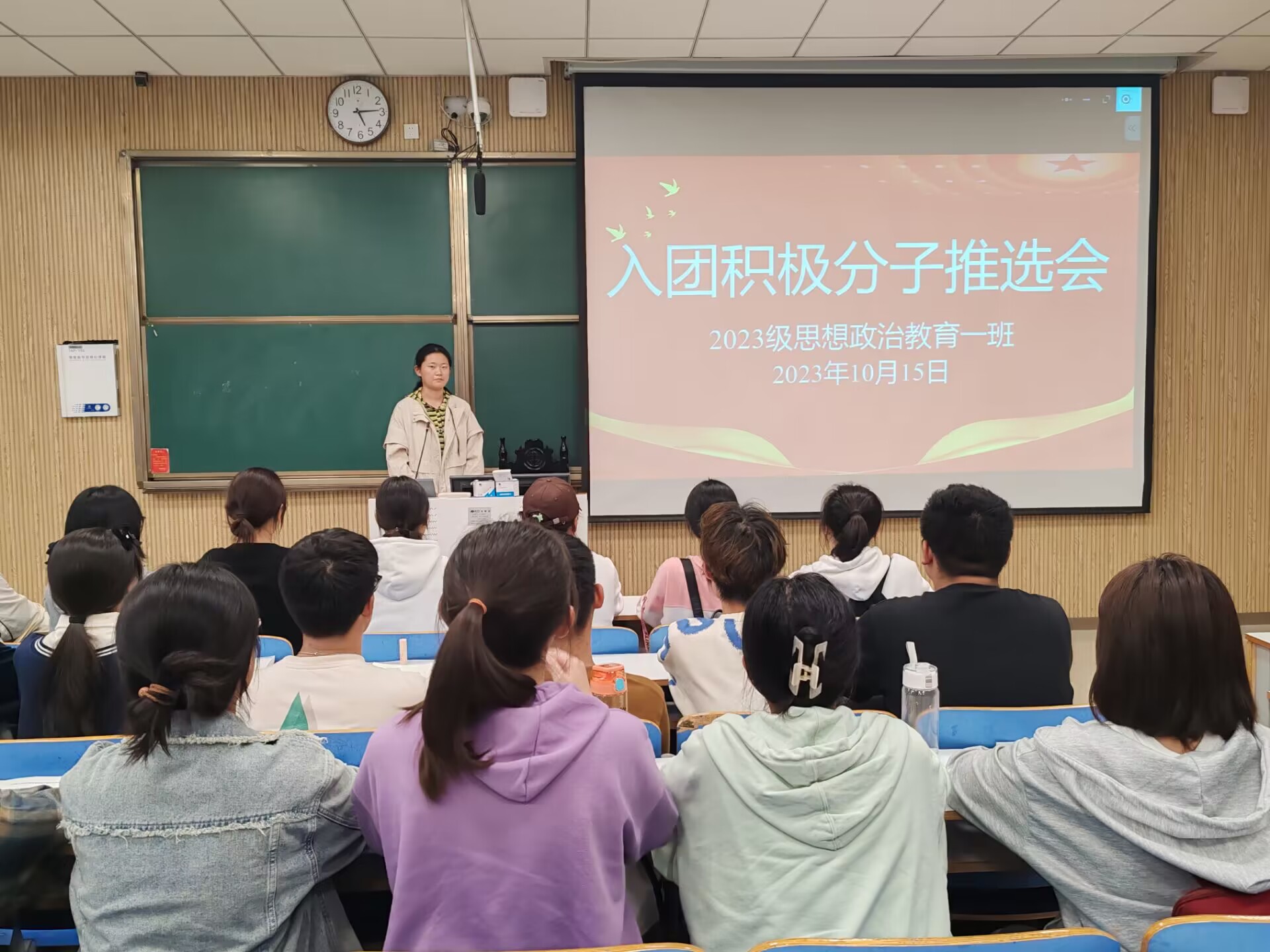 为进一步加强团组织建设,增强团支部的凝聚力,积极开展团青工作,10月15日下午,德赢AC米兰官网2023级思想政治教育一班在社科楼514教室召开入团积极分子推选班会。德赢官网2023级思想政治教育一班全体同学共同参与本次班会,班会由团支书张卓主持。