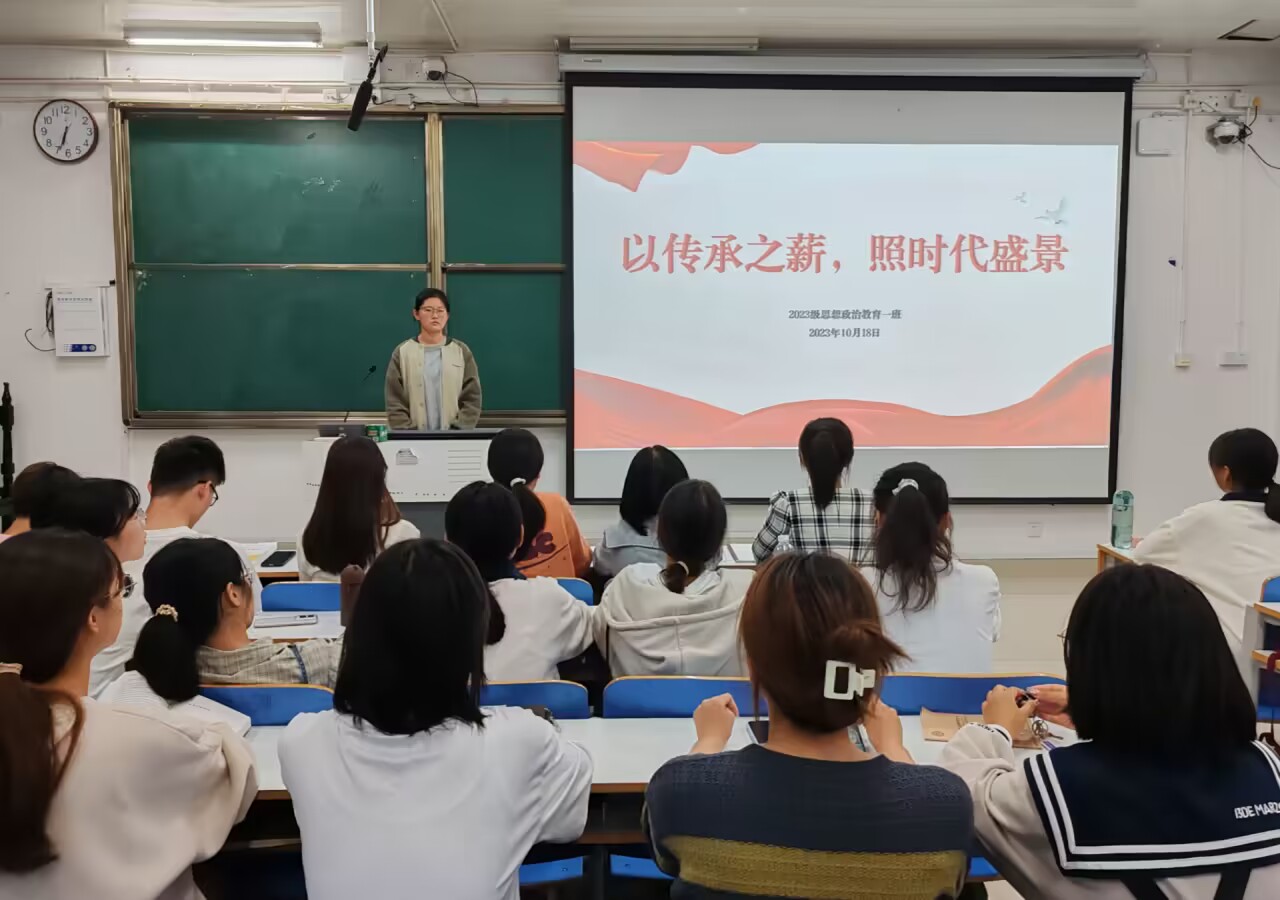 10月16日下午,德赢AC米兰官网2023级思想政治教育一班在社科楼515教室召开“以传承之薪,照时代盛景”主题团课。德赢官网2023级思想政治教育一班全体同学共同参与本次团课,团课由团支书张卓主持。