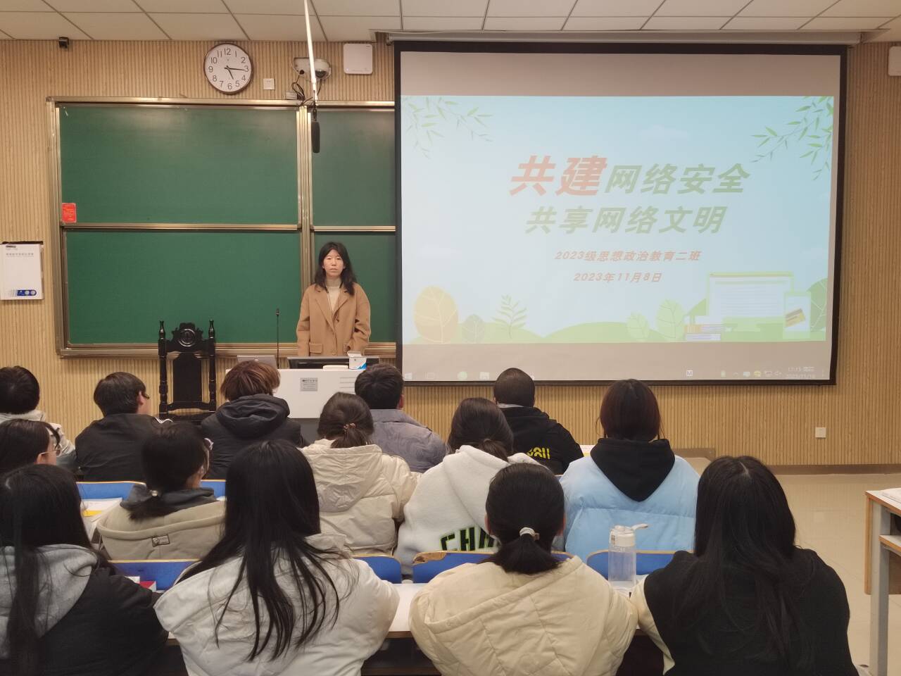 为了更好地提高大学生网络安全防范意识,共建共享网络安全,11月8日上午,德赢AC米兰官网2023级思想政治教育二班在社科楼515教室召开“共建网络安全,共享网络文明主题团课”。本次团课由团支书王慜初主持。