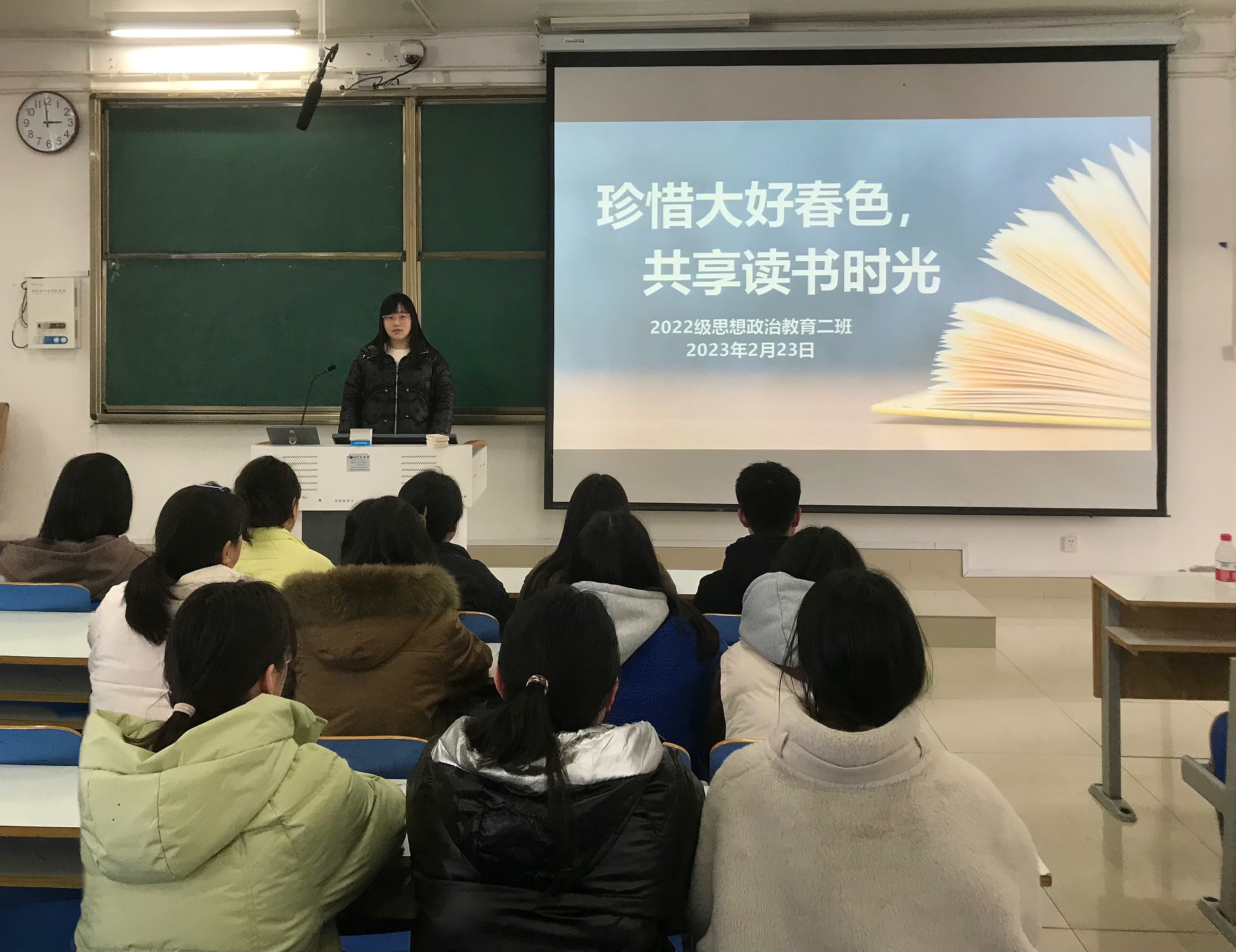 春光明媚好读书,墨韵飘香沁心扉。2月23日下午,德赢AC米兰官网2022级思想政治教育二班在社科楼514教室召开“珍惜大好春色,共享读书时光”主题班会。2022级思想政治教育二班全体同学共同参加会议。班会由班长李佳音主持。