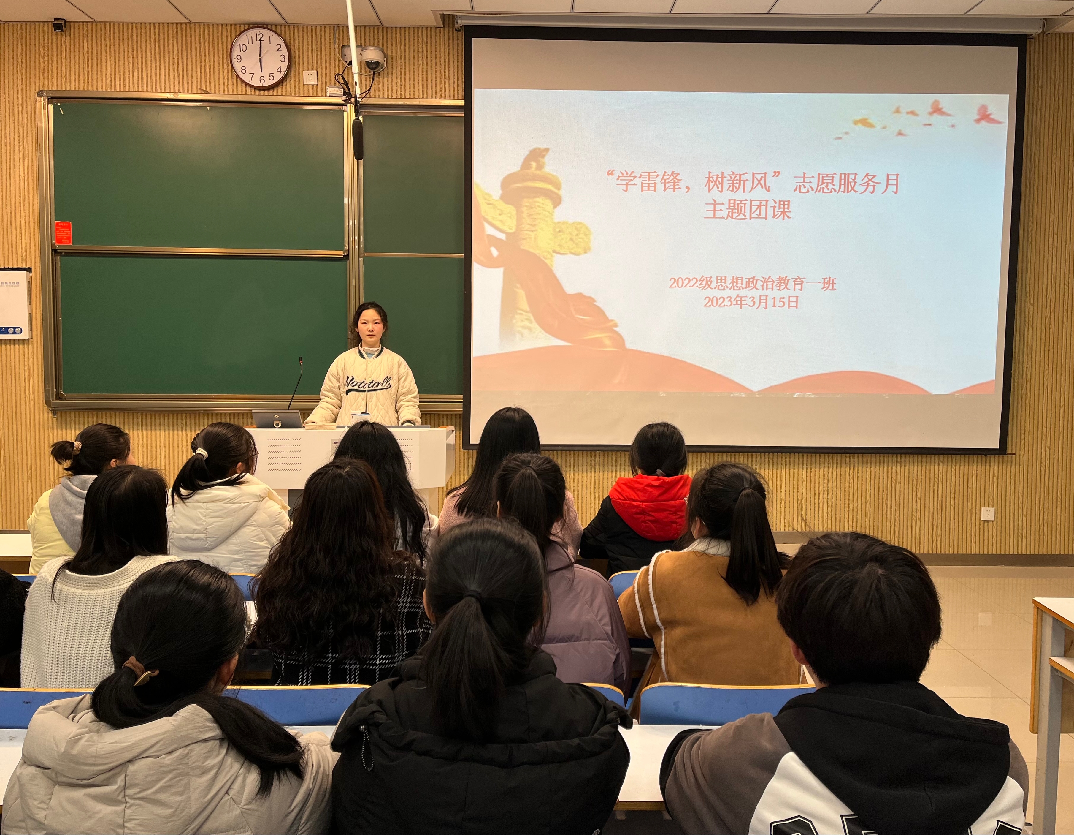 为进一步学习和弘扬雷锋精神,提升同学们的志愿服务意识,3月15日下午,德赢AC米兰官网2022级思想政治教育一班在社科楼515教室召开“学雷锋,树新风”志愿服务月主题团课。2022级思想政治教育一班全体同学参与本次团课,团课由团支部书记李佳茹主持。