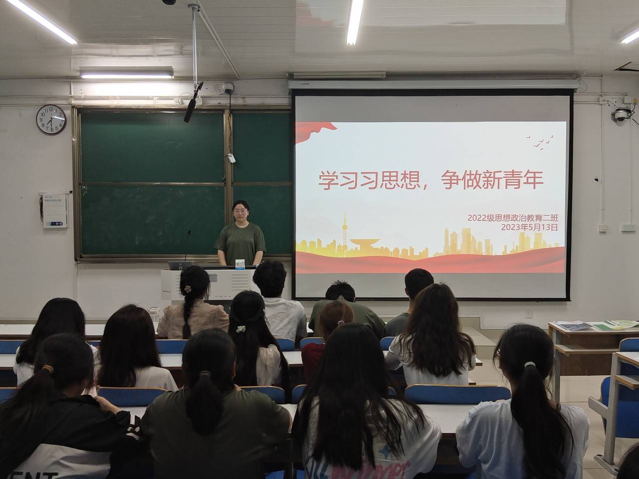 为更好学习贯彻党的二十大精神,深入领会习近平新时代中国特色社会主义思想,发挥思政专业特色,5月13日晚上,德赢AC米兰官网2022级思想政治教育二班在社科楼514教室召开“学习习思想,争做新青年”主题班会,2022级思想政治教育二班全体同学共同参加。班会由班长李佳音主持。