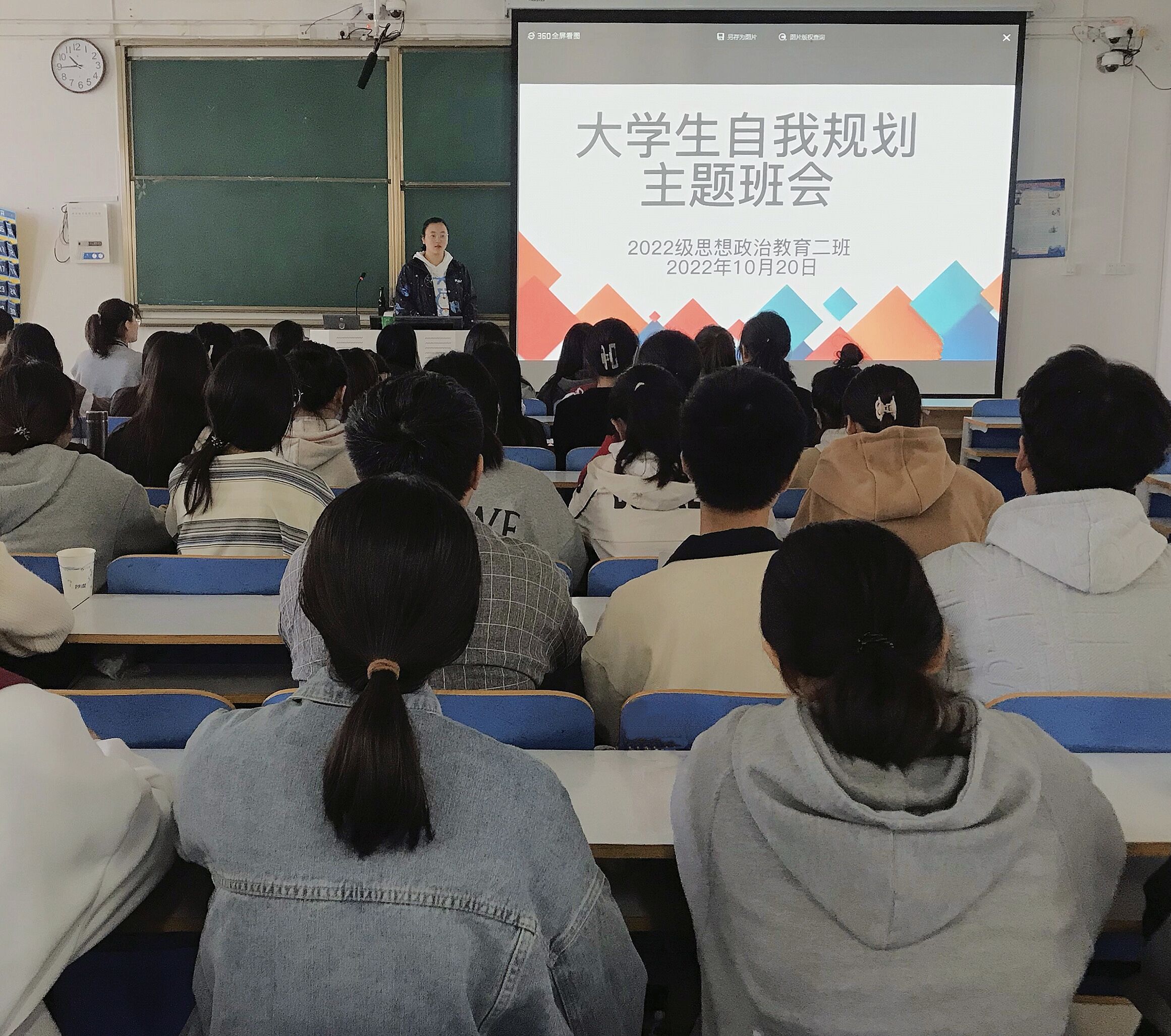 为帮助学生充分了解自我、明确奋斗目标,10月20日上午,德赢AC米兰官网2022级思想政治教育二班在社科楼514教室召开“大学生自我规划”主题班会。2022级思想政治教育二班全体同学共同参加会议。本次会议由班长李佳音主持。