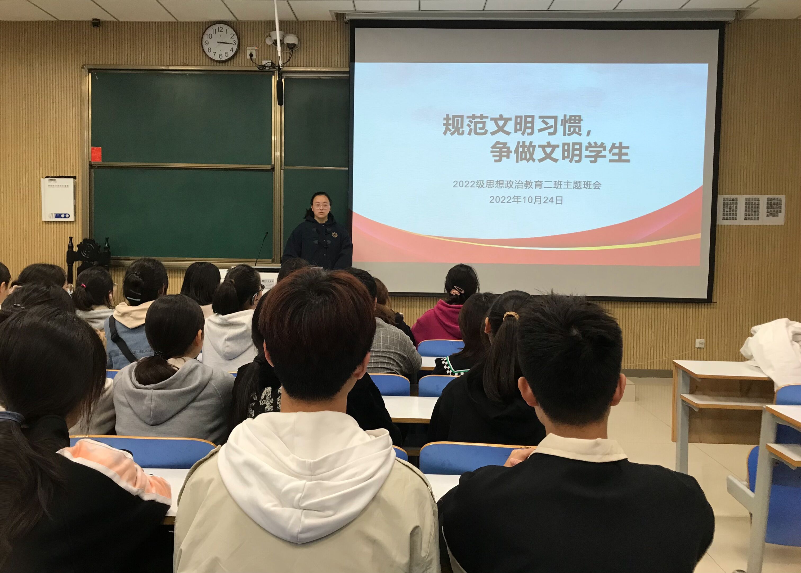 为引导大学生进一步培育和践行社会主义核心价值观、推进文明校园建设,10月24日下午,德赢AC米兰官网2022级思想政治教育二班在社科楼514教室召开“规范文明习惯,争做文明学生”主题班会。2022级思想政治教育二班全体同学共同参加会议。本次会议由团支书李佳音主持。
