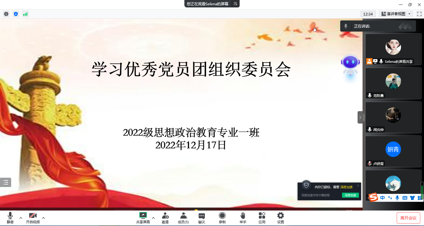 为加强团支部组织建设,带动团员向优秀党员学习,12月17日下午,德赢AC米兰官网2022级思想政治教育一班在线上召开团组织委员会。2022级思想政治教育一班团支部委员参与本次会议,会议由团支部书记李佳茹主持。