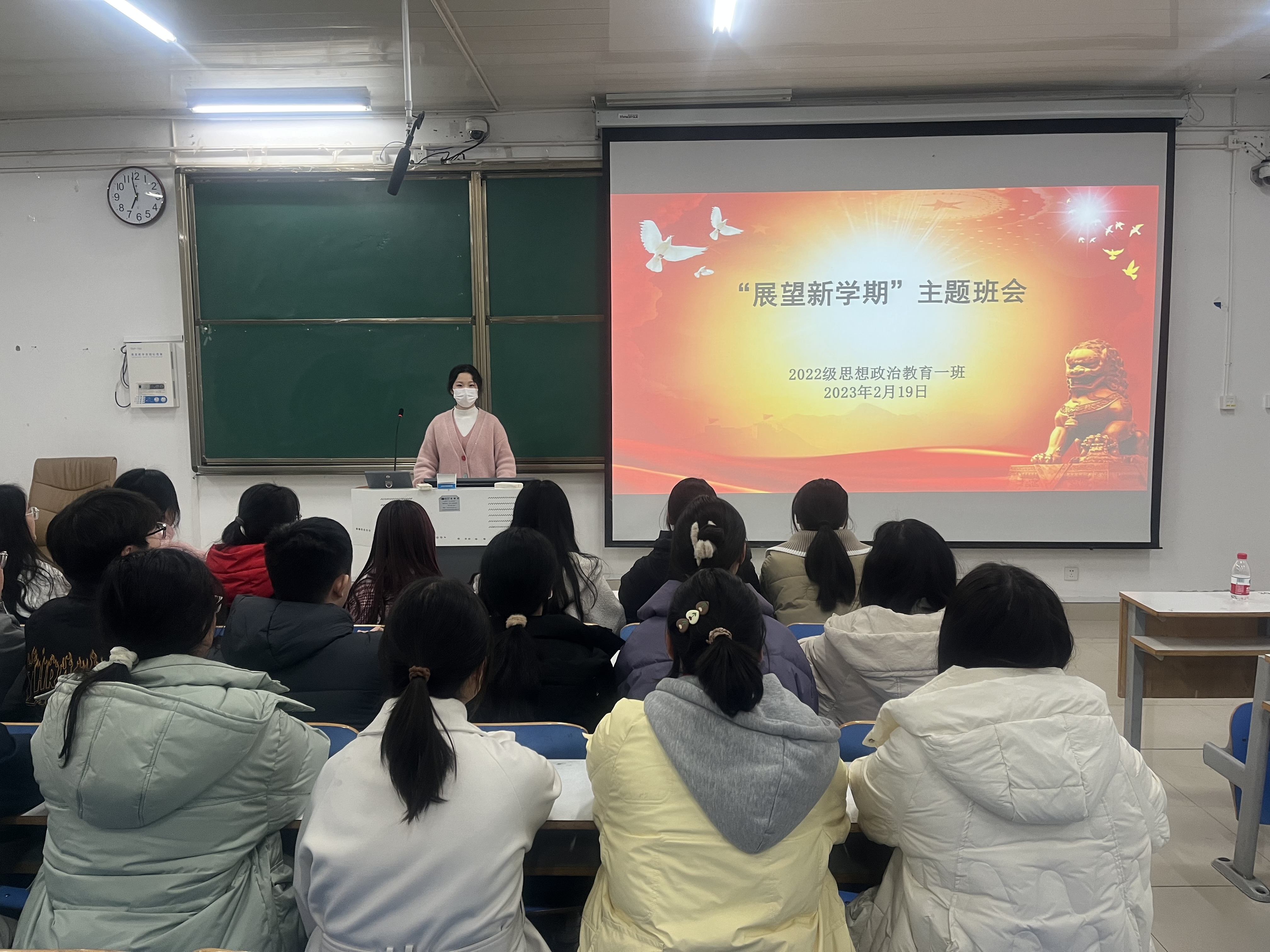为更好地迎接新学期的到来,顺利开展各项工作,2月19日下午,德赢AC米兰官网2022级思想政治教育一班在社科楼514教室召开“展望新学期”主题班会。2022级思想政治教育一班全体同学参与班会,班会由团支书李佳茹主持。