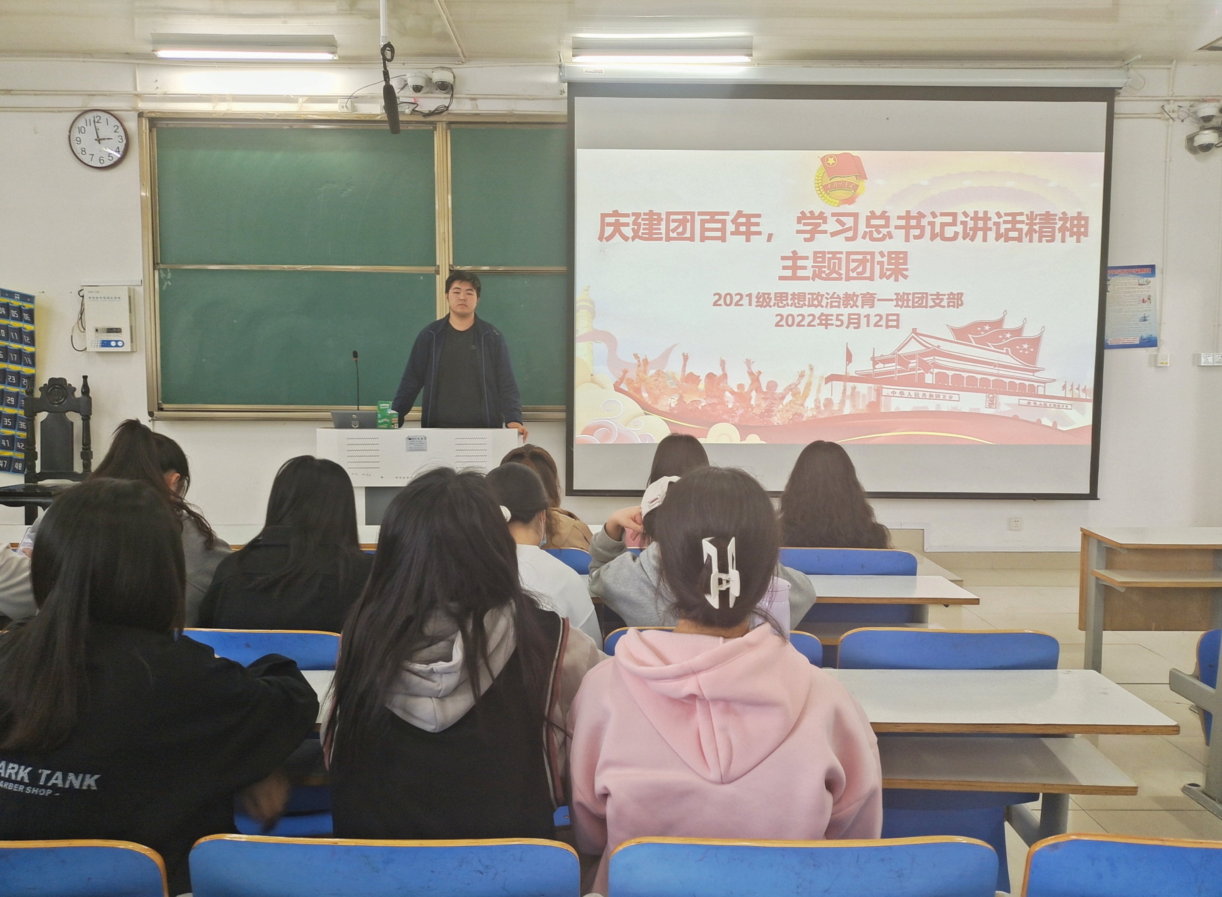 5月12日下午,德赢AC米兰官网2021级思想政治教育一班在社科楼514教室召开“庆建团百年,学习总书记讲话精神”主题团课。2021级思想政治教育一班全体团员共同参加了本次团课,团课由团支书戴翰林主持。