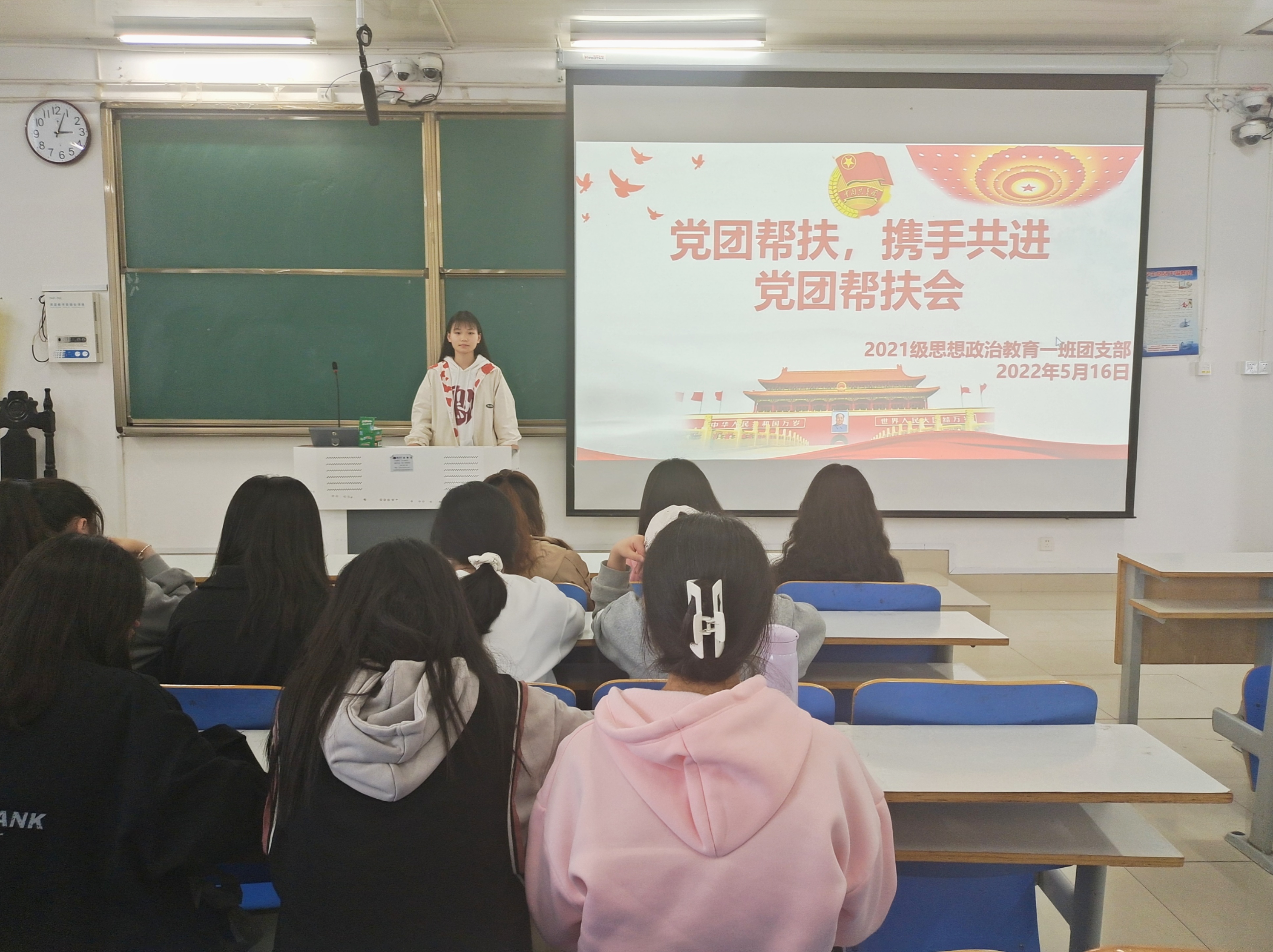 5月16日下午,德赢AC米兰官网2021级思想政治教育一班在社科楼514教室召开“党团帮扶,携手共进”党团帮扶会。2019级思想政治教育一班正式党员刘鹏、宋雨潇以及2021级思想政治教育一班全体团员共同参加了本次会议。会议由团支书戴翰林主持。