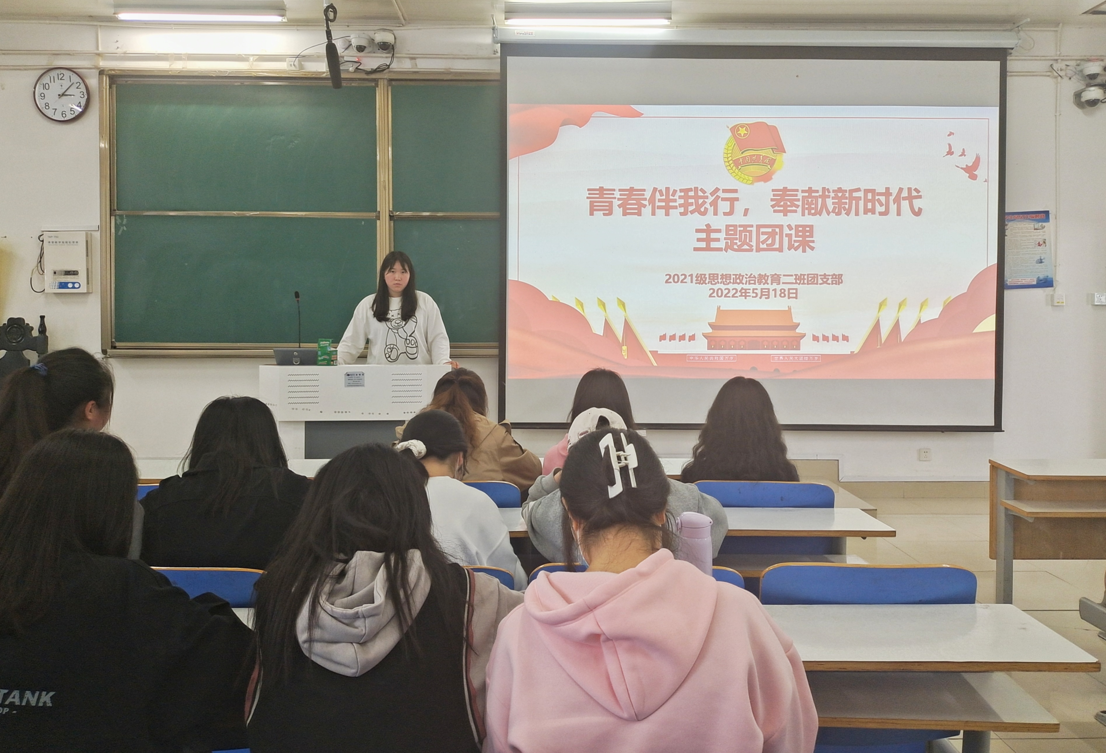 5月18日,德赢AC米兰官网2021级思想政治教育二班在社科楼514教室召开“青春伴我行,奉献新时代”主题团课。2021级思想政治教育二班全体团员参加此次团课。团课由团支书王婧欣主持。