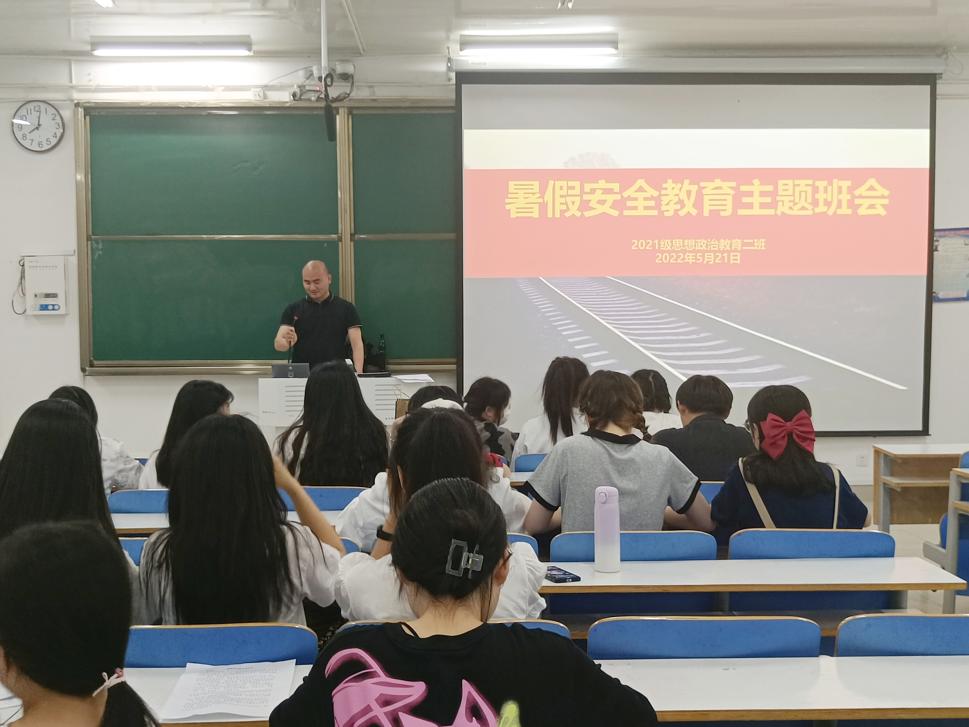 5月21日下午,德赢AC米兰官网2021级思想政治教育二班在社科楼514教室召开暑假安全教育主题班会。辅导员周文豪及2021级思想政治教育二班全体同学参加此次班会。班会由辅导员周文豪主持。