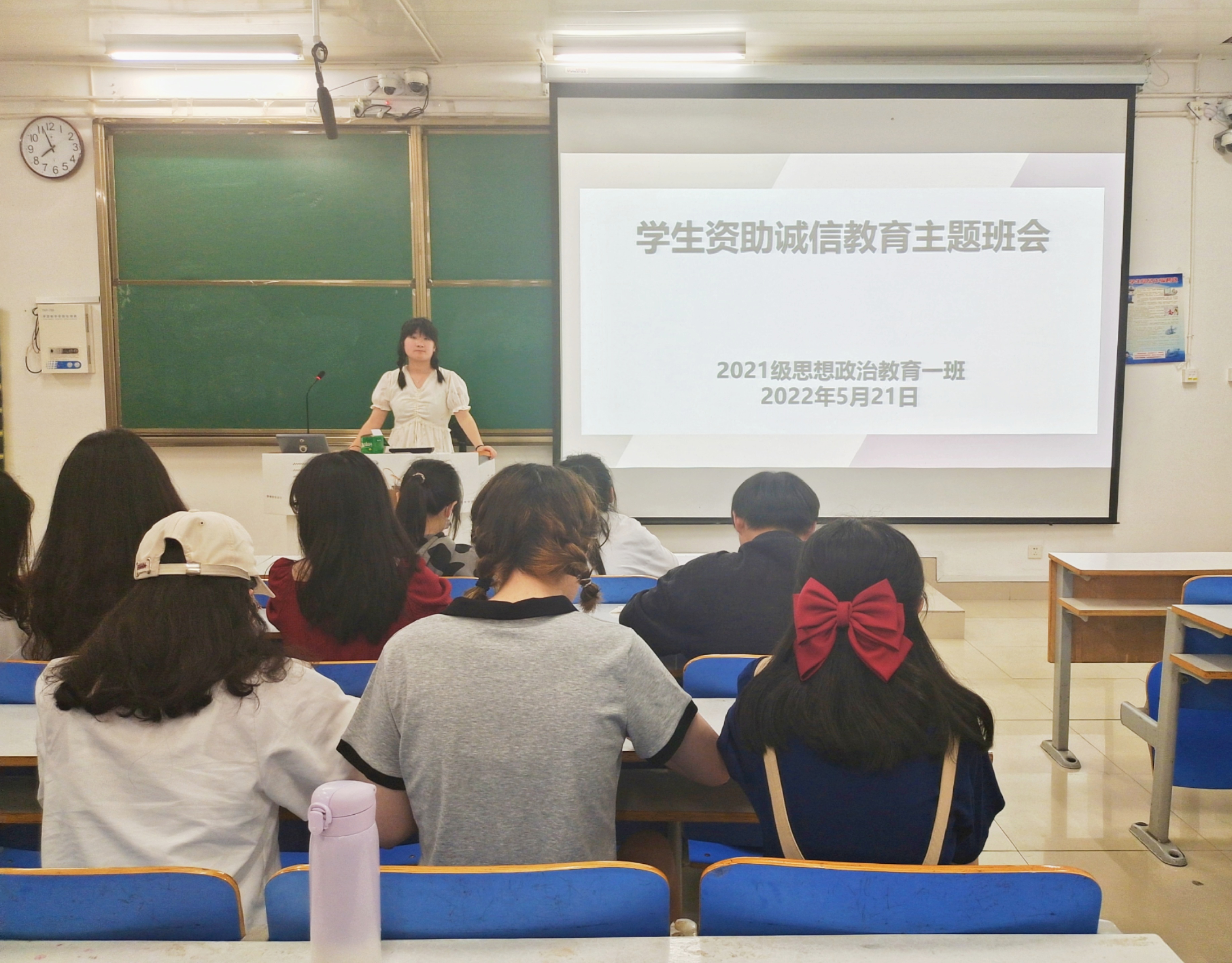 5月21日晚上,德赢AC米兰官网2021级思想政治教育一班再社科楼516教室召开“学生资助诚信教育”主题班会。2021级思想政治教育一班全体成员共同参加了本次班会,班会由副班长雷敏主持。