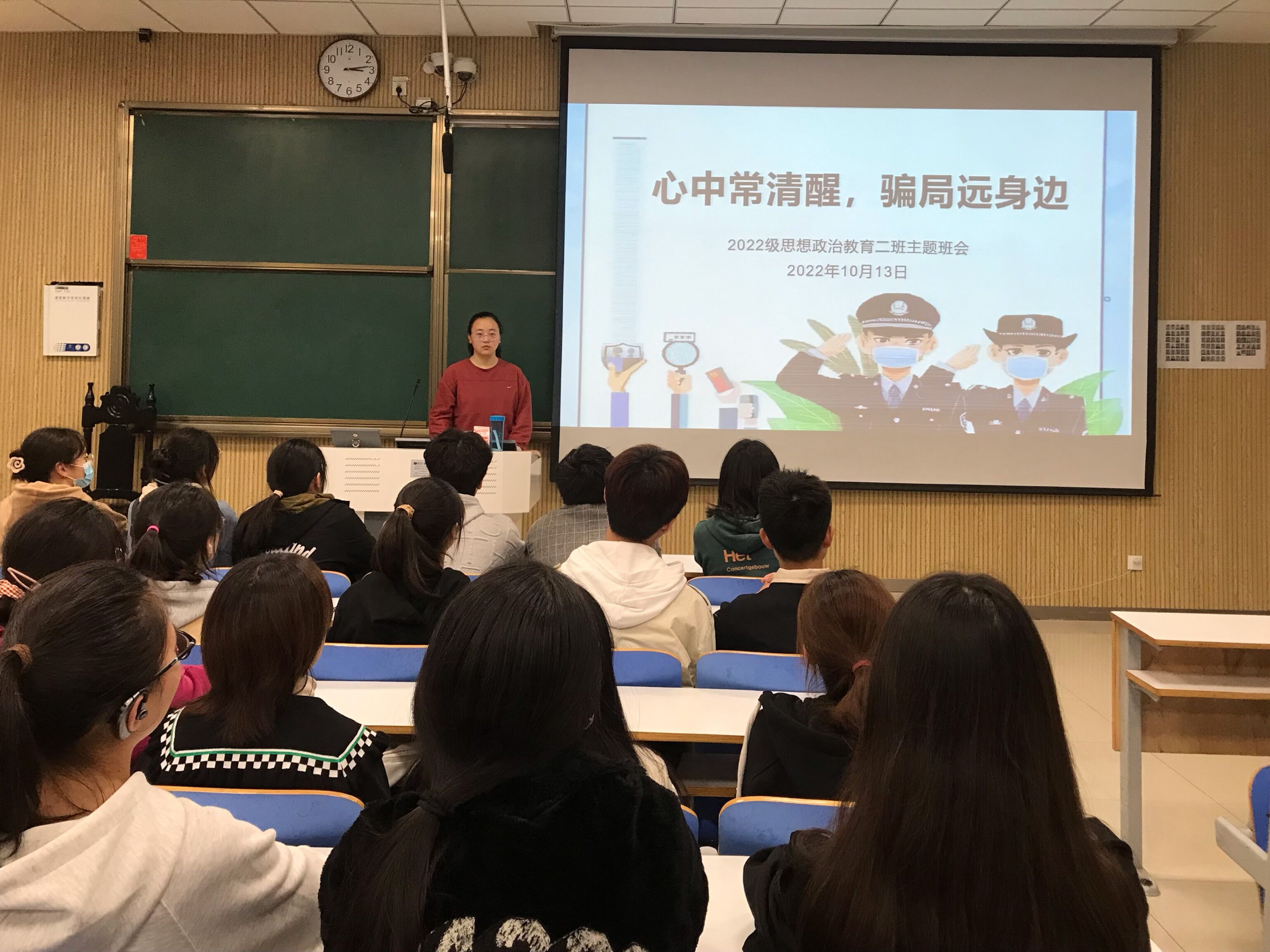 10月13日下午,德赢AC米兰官网2022级思想政治教育二班在社科楼514教室召开“心中常清醒,骗局远身边”主题班会。本次会议由班长李佳音同学主持,2022级思想政治教育二班全体同学共同参加会议。