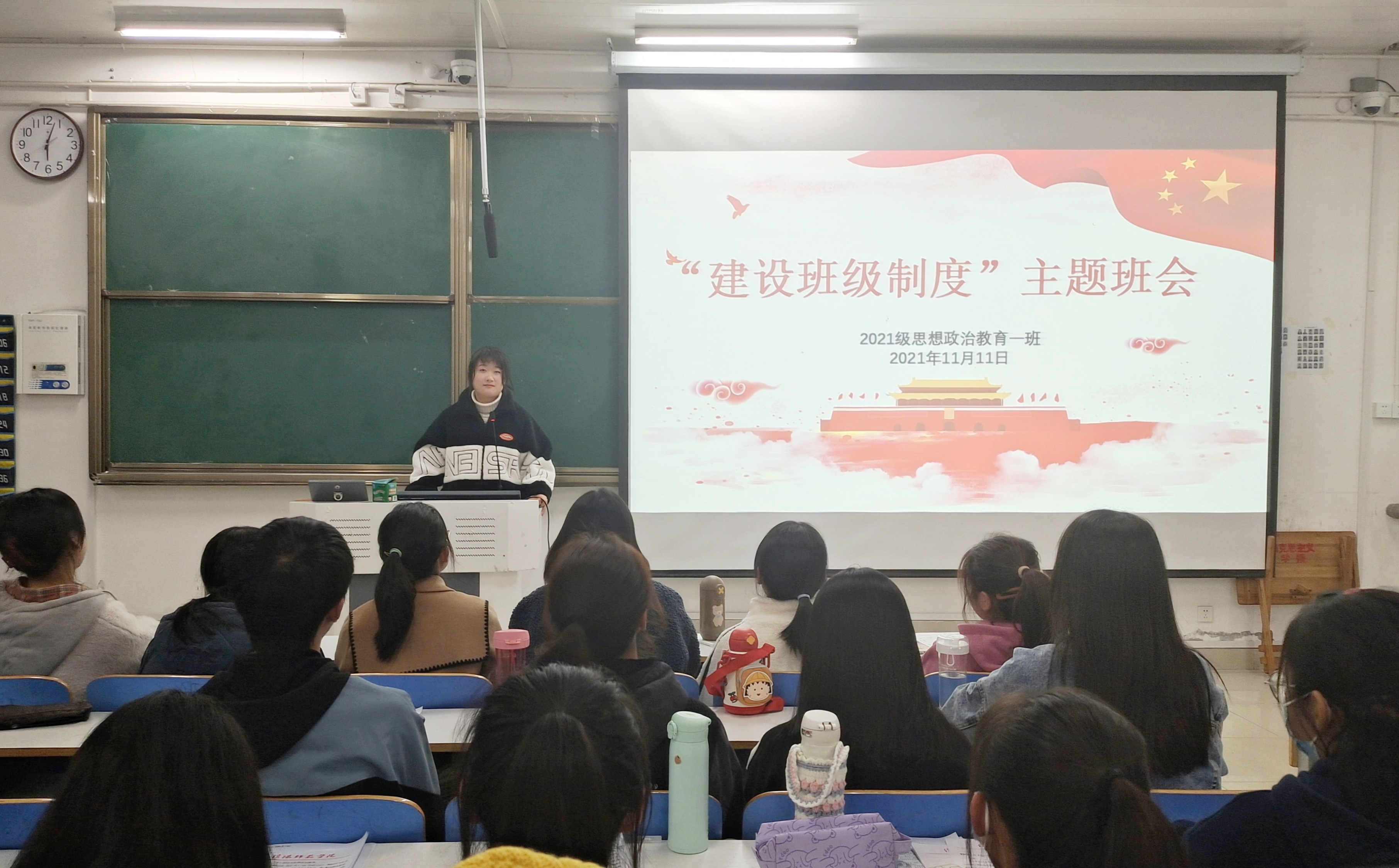 为了打造一个井然有序、遵纪守约的文明班集体。11月11日下午,德赢AC米兰官网2021级思想政治教育一班在社科楼516教室召开“建设班级制度”主题班会。2021级思想政治教育一班全体成员参加了本次班会。班会由副班长雷敏主持。