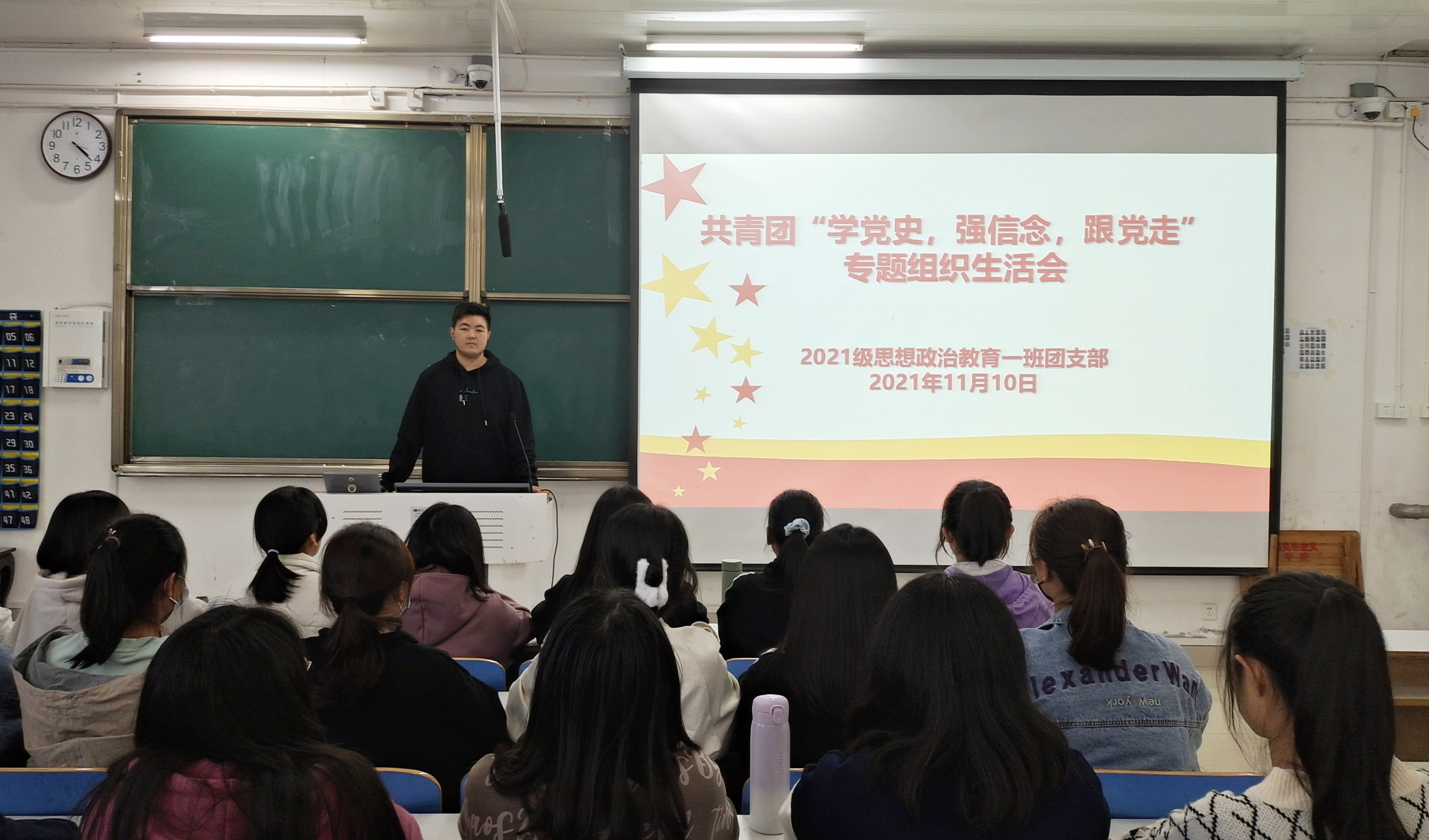 响应共青团“学党史、强信念、跟党走”的号召,11月10日下午,德赢AC米兰官网2021级思想政治教育一班在社科楼516教室召开组织生活会。2021级思想政治教育一班全体成员参加了本次大会。会议由团支书戴翰林主持。