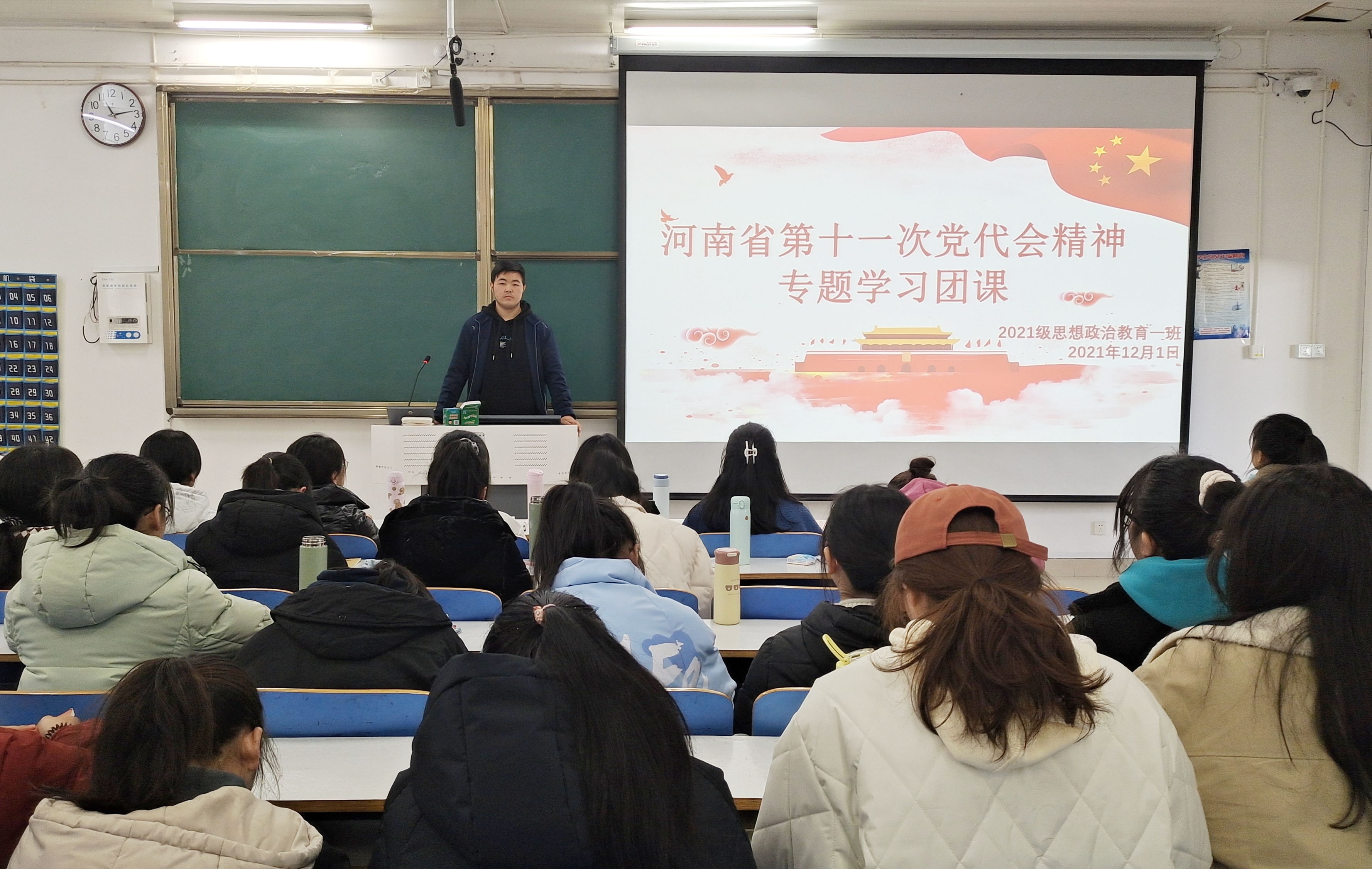 12月1日上午,德赢AC米兰官网2021级思想政治教育一班在社科楼514教室召开河南省第十一次党代会精神专题学习团课。2021级思想政治教育一班全体团员参加本次团课。团课由团支书戴翰林主持。