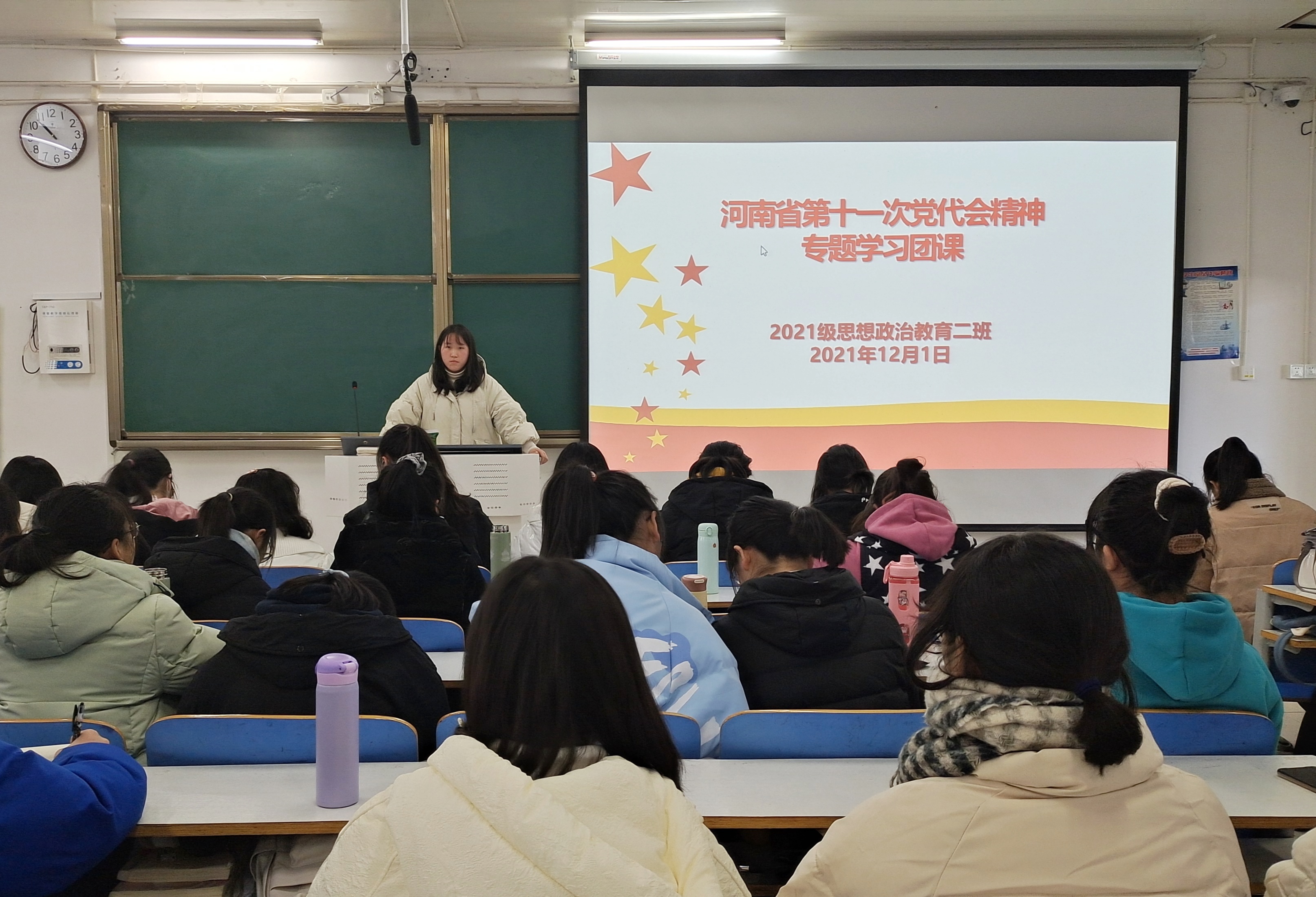 12月1日上午,德赢AC米兰官网2021级思想政治教育二班召开河南省第十一次党代会精神专题学习团课。2021级思想政治教育二班全体团员参加此次团课。团课由团支书王婧欣主持。
