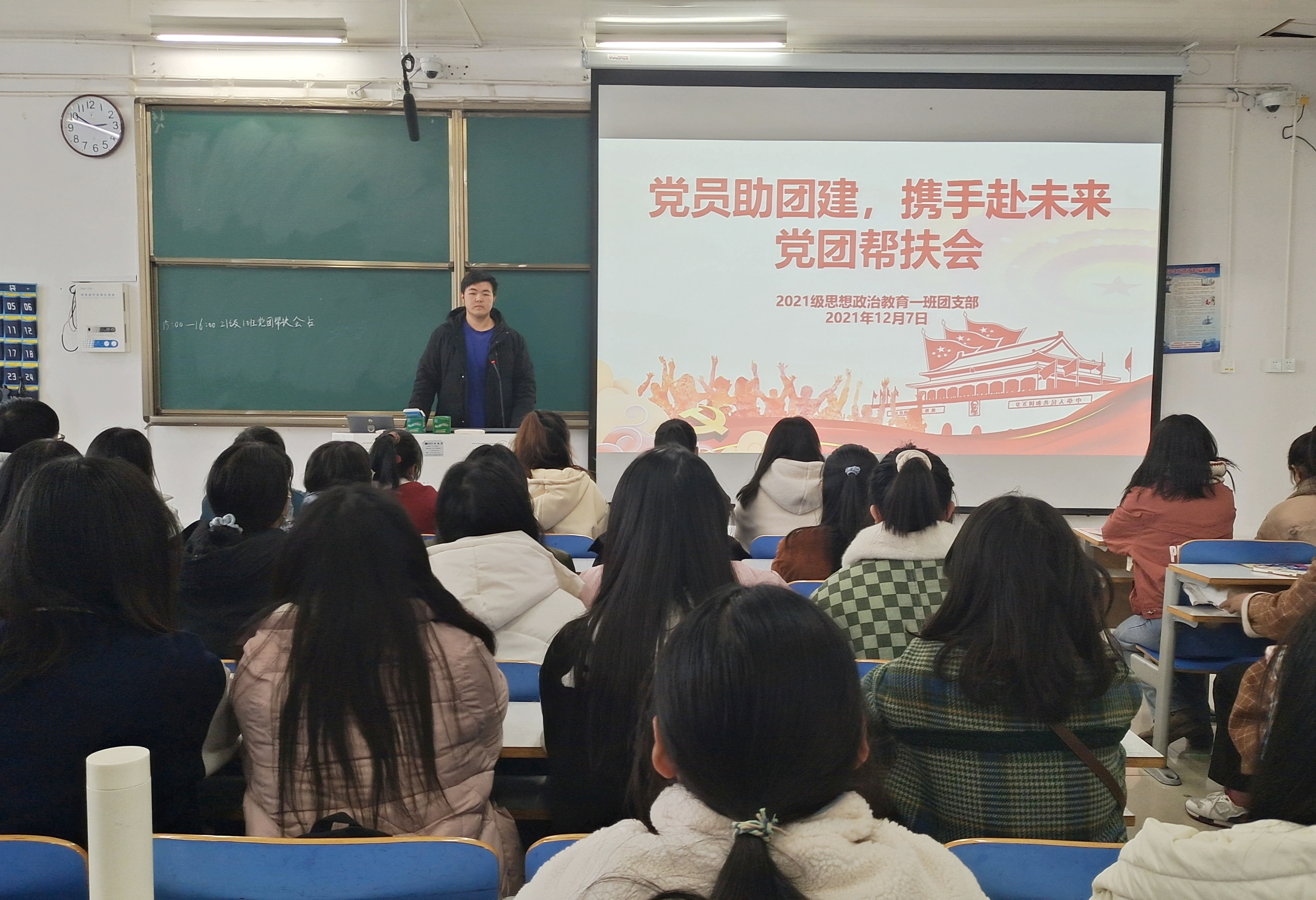 12月7日下午,德赢AC米兰官网2021级思想政治教育一班在社科楼516教室召开“党员助团建,携手赴未来”党团帮扶会。2018级思想政治教育一班牛田存、靳雨及2021级思想政治教育一班全体团员参加本次会议。会议由团支书戴翰林主持。